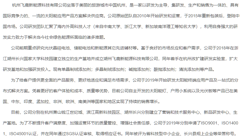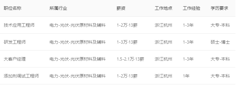 1.今天给大家分享的是杭州飞鹿新能源科技有限公司信息!非常不错的光伏企业,本次招聘针对技术应用工程师、研发工程师、大客户经理、添加剂调试工程师等岗位,年薪最高可达27万。