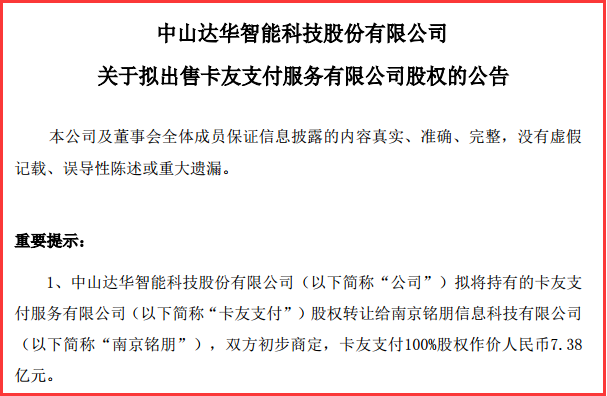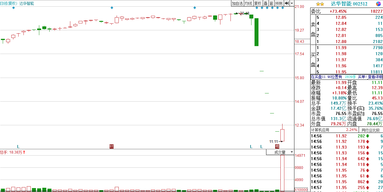 1.达华智能发布公告,公司把支付牌照给卖了,一个牌照卖了7.38个亿,随后达华智能向银行申请了1个亿的授信额度,这只股票在经历了连续5个跌停之后,终于打开了,股价在利好的刺激下低开高走,吸引了无数小散抄底