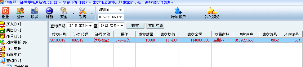 3.华泰证券的一位股民看到今天不断有人在买入,觉得机会终于来了,公司卖支付牌照赚了那么多钱,今年的利润肯定不愁了,这位股民全仓买了11万的达华智能,尾盘这位股民收益4个多点,在营业部到处炫耀说这只股票准备长期持有,坐等翻倍
