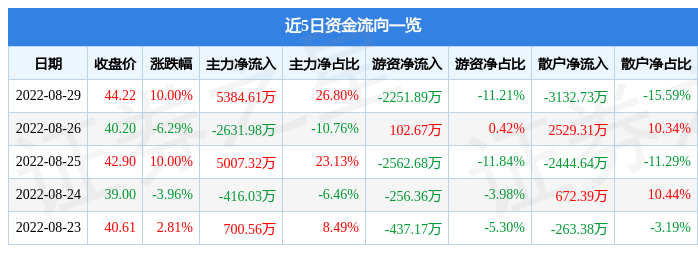 3.资金流向数据方面,8月29日主力资金净流入5384.61万元,游资资金净流出2251.89万元,散户资金净流出3132.73万元。