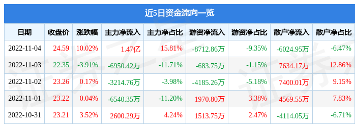 4.近5日资金流向一览见下表:该股为超超临界发电,储能,氢能源/燃料电池概念热股,当日超超临界发电概念上涨3.21%,储能概念上涨2.77%,氢能源/燃料电池概念上涨2.37%