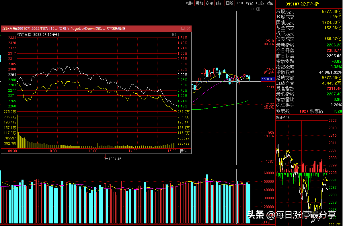 深证A指:7.13收盘价 2276.05,7.15收盘价 2259.72。