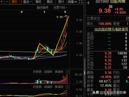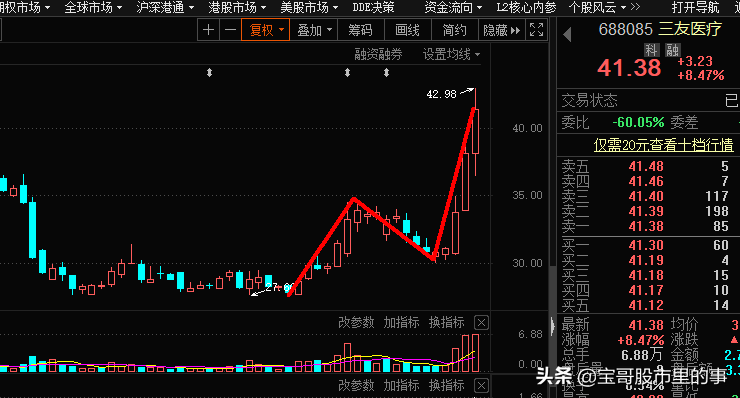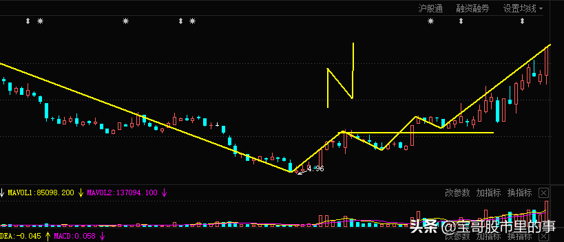 1.股市里的事:K线密码之抄底该方法适用于股票超级短线以及中线,根据看K线形态以及量价量价分析得出,买点信号,为突破短期建仓,或三浪买点。