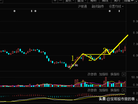 3.1.突破一浪高点开始入场(三浪)2.突破一浪高点后,回踩一浪高点(参考上图)本方法适用于短线,波段,唯一不足是右侧交易,但成功率高备注:此类形态容易出现在中小盘个股中(大盘股当然也有,时间跨度大,见图六,图七,图八,图九和图十)重庆钢铁,楚天龙等等都是非常经典的案例,后期大家可以根据这些个股的历史去挖掘。
