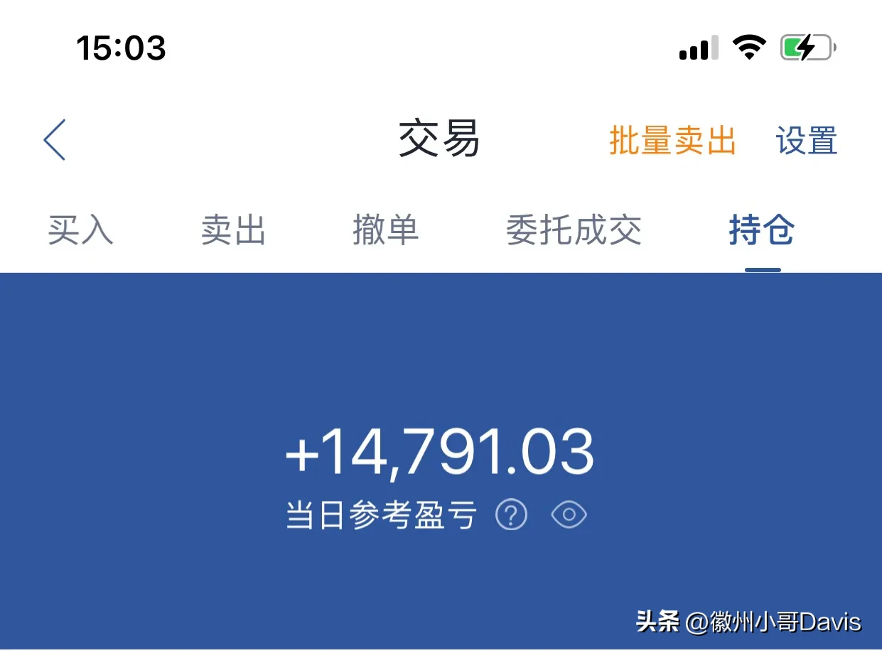 8.市场上一片欢歌笑语,两市约3800股上涨,个股涨多跌少,市场上赚钱效应好,今天总算喝了一口汤,浮赢14791。