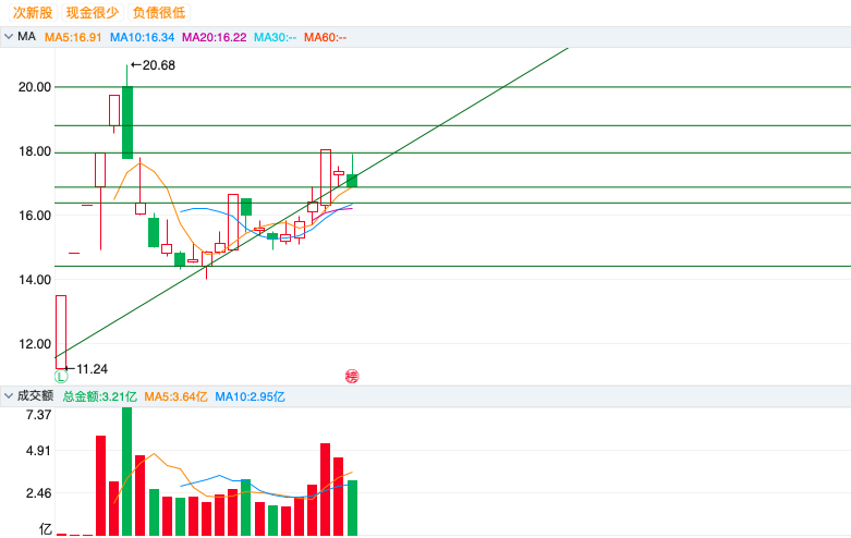 昨天分析到,17.97元或是明日的压力位,如果能明日能冲上17.97元,那么上涨的空间较大,或会达到18.73元,甚至20元以上,如果不能股票或进行震荡回调,可落袋为安。