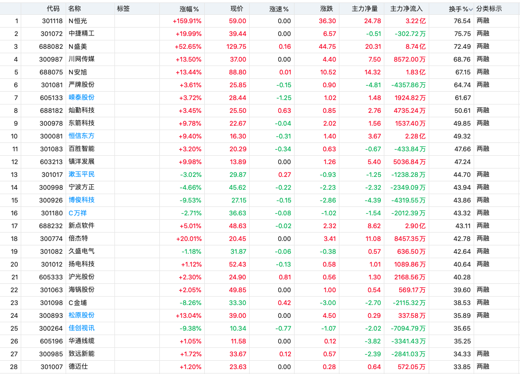 再一次被验证,换手率高、大资金进入的股都有大幅上涨,当然这有点马后炮的嫌疑,如果能提前摸索出这套规律就好了,加油!
