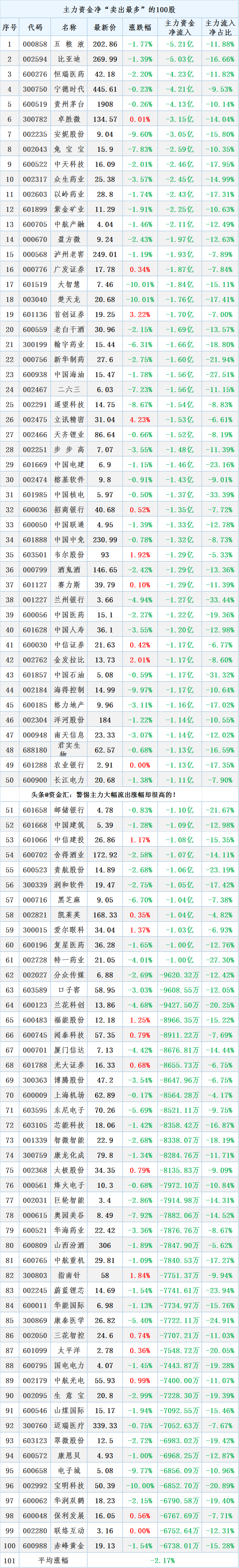 这些股明天危险!不做“接盘侠”,今日主力资金“大幅卖出”100股名单: