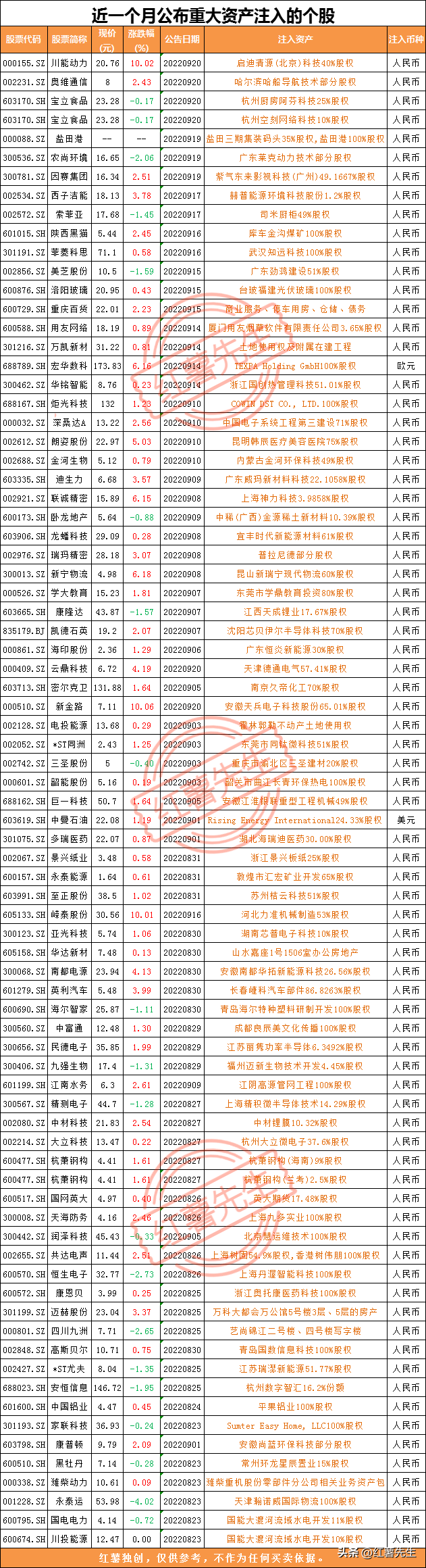 1.最新!近一个月公布重大资产注入的个股[鼓掌]资产注入一般指的是上市公司大股东把自身的资产出售给上市公司,或者是其他重大资产注入到这家上市公司中。