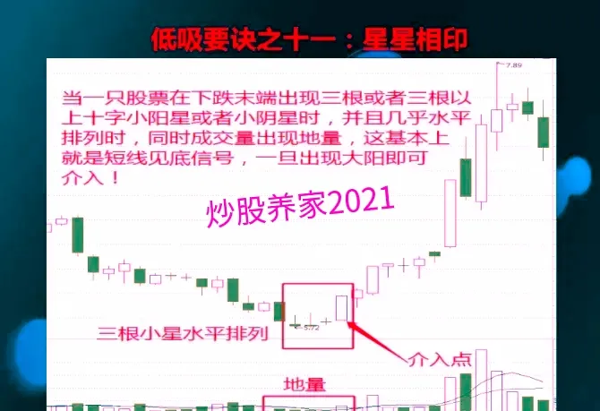 5.5,寻找低位量缩的,比如说,一只股票,他连续出现回调,那成交量呢,开始极度的萎缩,并且KDJ指标,他开始出现底部异动的现象,那就很有可能,一只股票,它的短期或者说呢,中期底部就出现了。