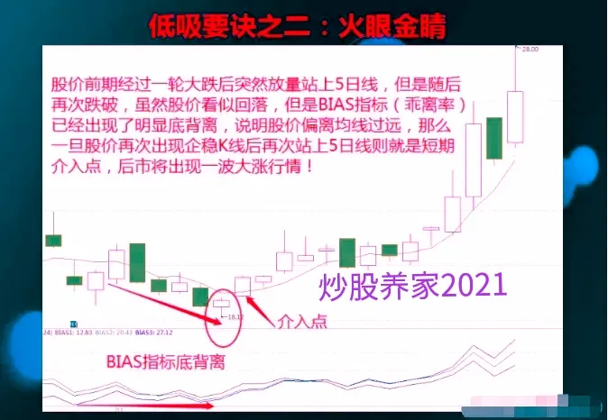6.6看指标,比如一只个股,他短期MACD指标出现了底部背离的形态,或者说呢,是KDj或者rsi指标出现了超卖信号,再或者就是股价短期触及了布林线指标下轨的位置,那这个时候往往,是一波低吸的机会。