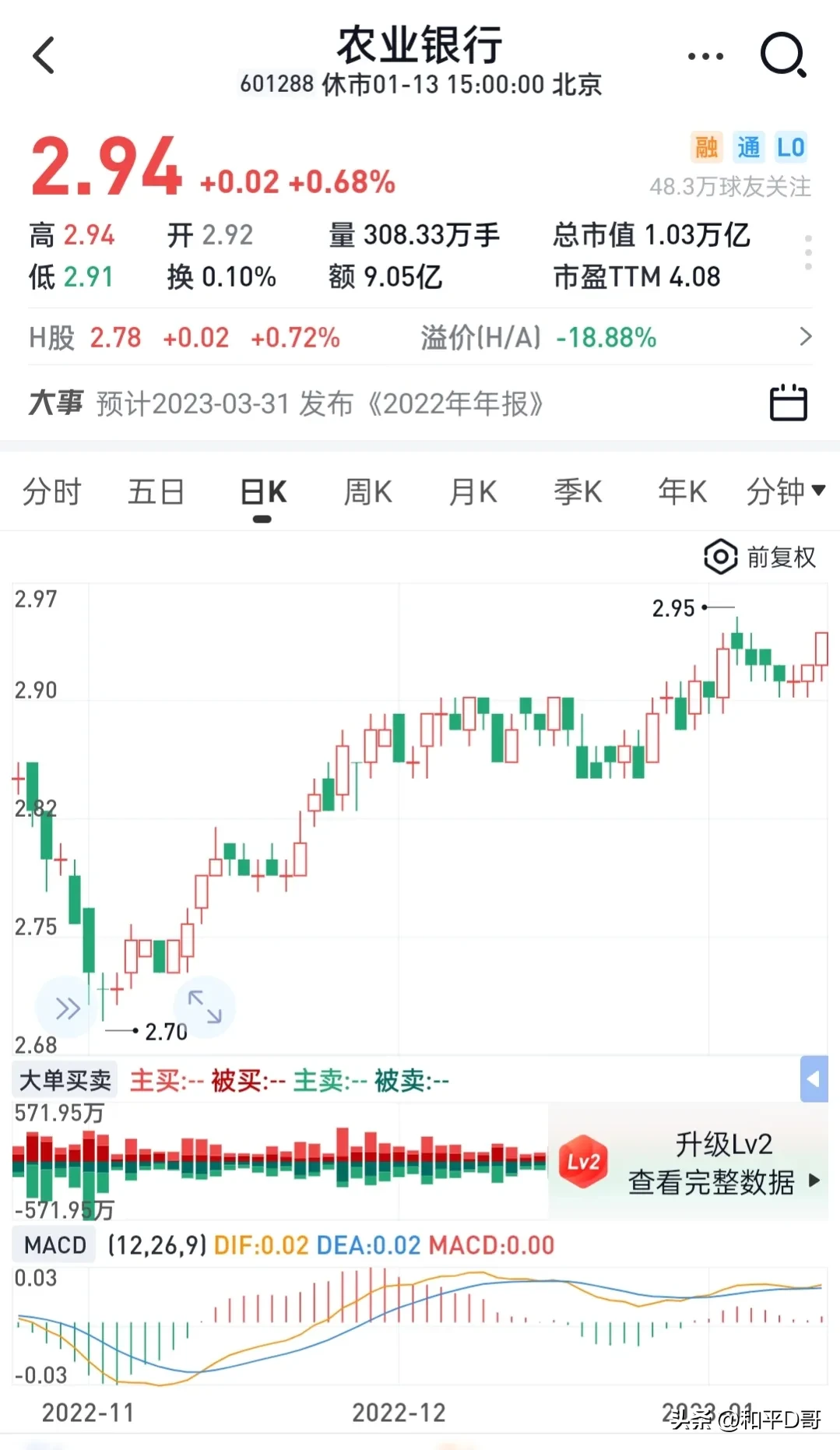 1.有朋友说农业银行从4元可以跌到2.9元,那么未来从2.9元跌30%到2元是有较大可能,我对四大没有偏见,但是用理性查了下。