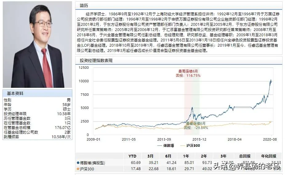 4.24、睿远基金:傅鹏博,风格:成长价值养基界元老,之前是兴全基金,兴全社会责任九年累计回报434.13%。