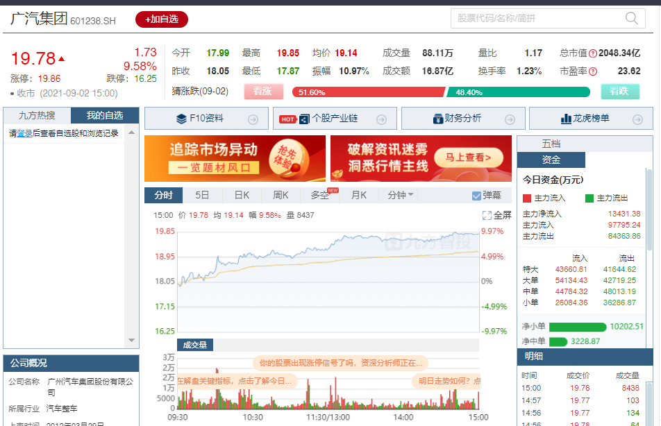 6.而受此消息发酵影响,目前广汽埃安母公司广汽的股票近日大涨近10%,一并创造近年来最高市值记录,令人称奇。