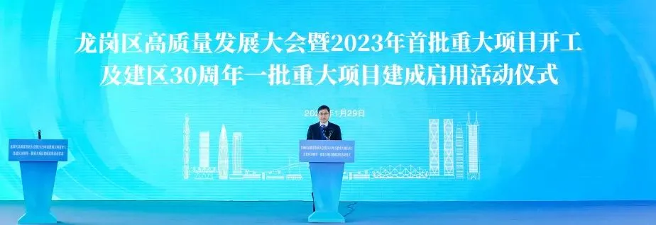 当天,在深圳市高质量发展大会结束后,龙岗区立即召开了龙岗区高质量发展大会,并同步举行了2023年首批重大项目开工及建区30周年一批重大项目建成启用仪式。