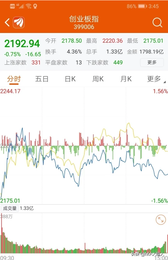 6.可以看出美国股市的影响在1000点以上才能动摇大盘,但影响越来越小,今天创业板虽然低开但也快速翻红,大盘全天小幅震荡。