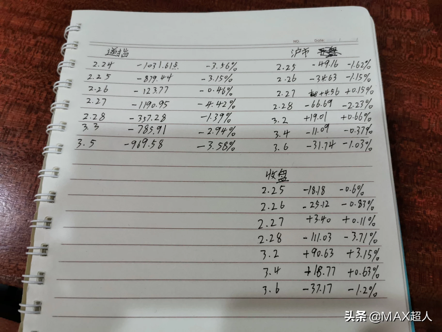 4.接着是昨晚道指跌了-969.58点,-3.58%,今天开盘跌-1.03%,收盘-1.21%。
