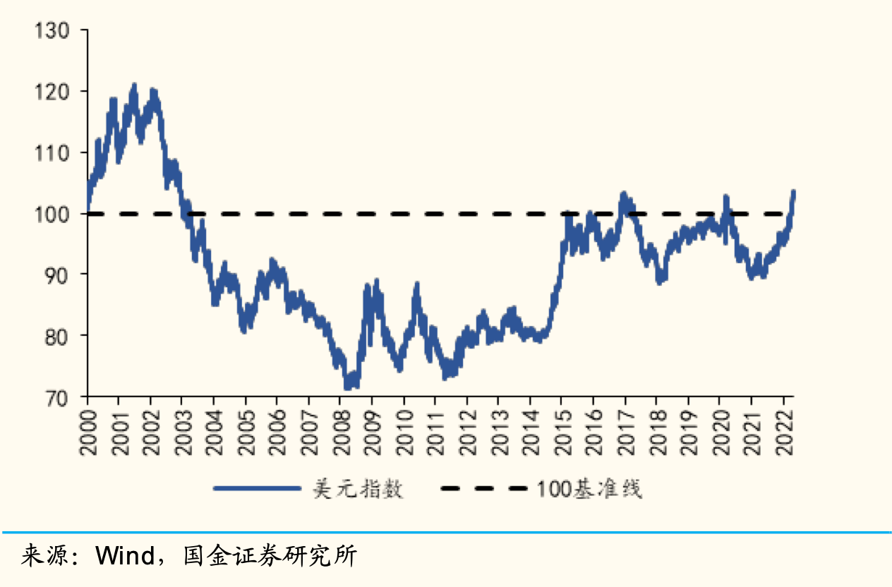 美元指数(未来几年)不大可能大跌(即:很难跌破100。而且即便是跌到100也是大周期中的高位),因为美联储近几年会坚决抑制通胀并持续加息到5.25%以上(甚至到6%);