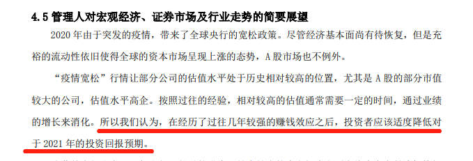 5.其实,对于今年市场的看法,他在年报的展望了多少埋了一些伏笔,公开提醒投资者降低今年的回报预期,言外之意赚钱就是今年赚钱会很不容易。