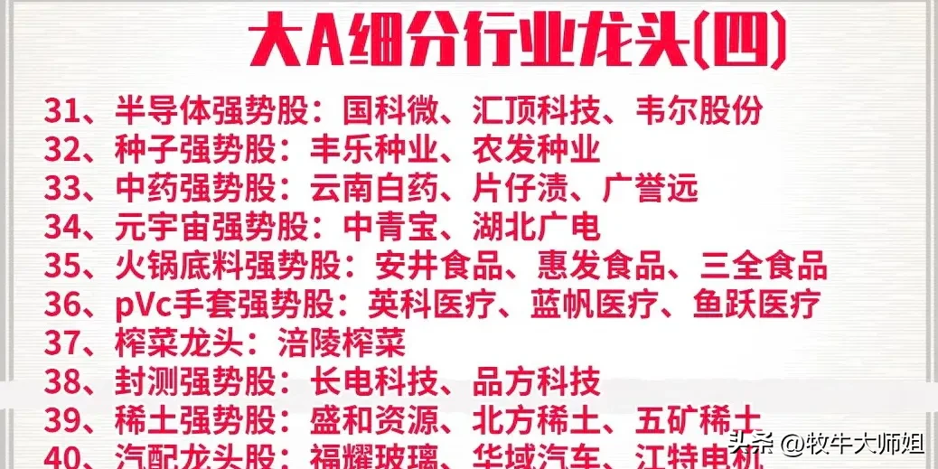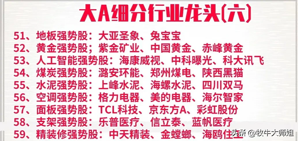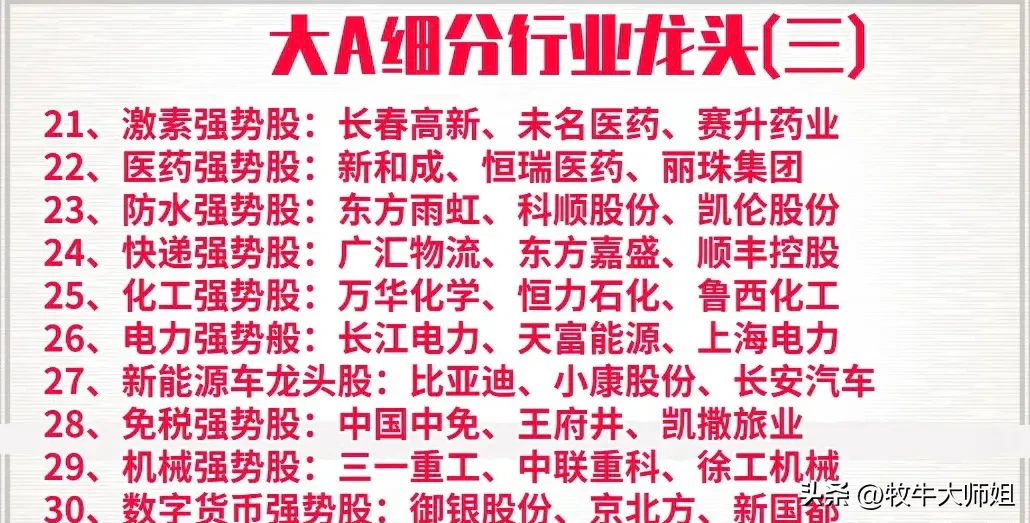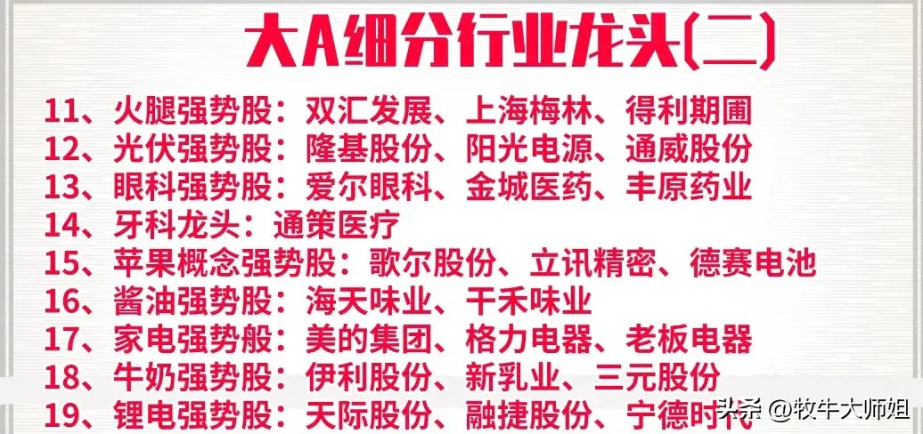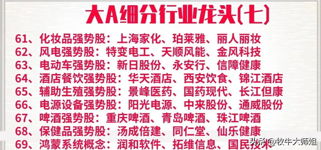 4.最后,整理出各行各业的优质公司分享给大家,如果觉得有用的朋友,记得点赞关注,并转发给更多需要的朋友,祝股市长红,天天吃肉。