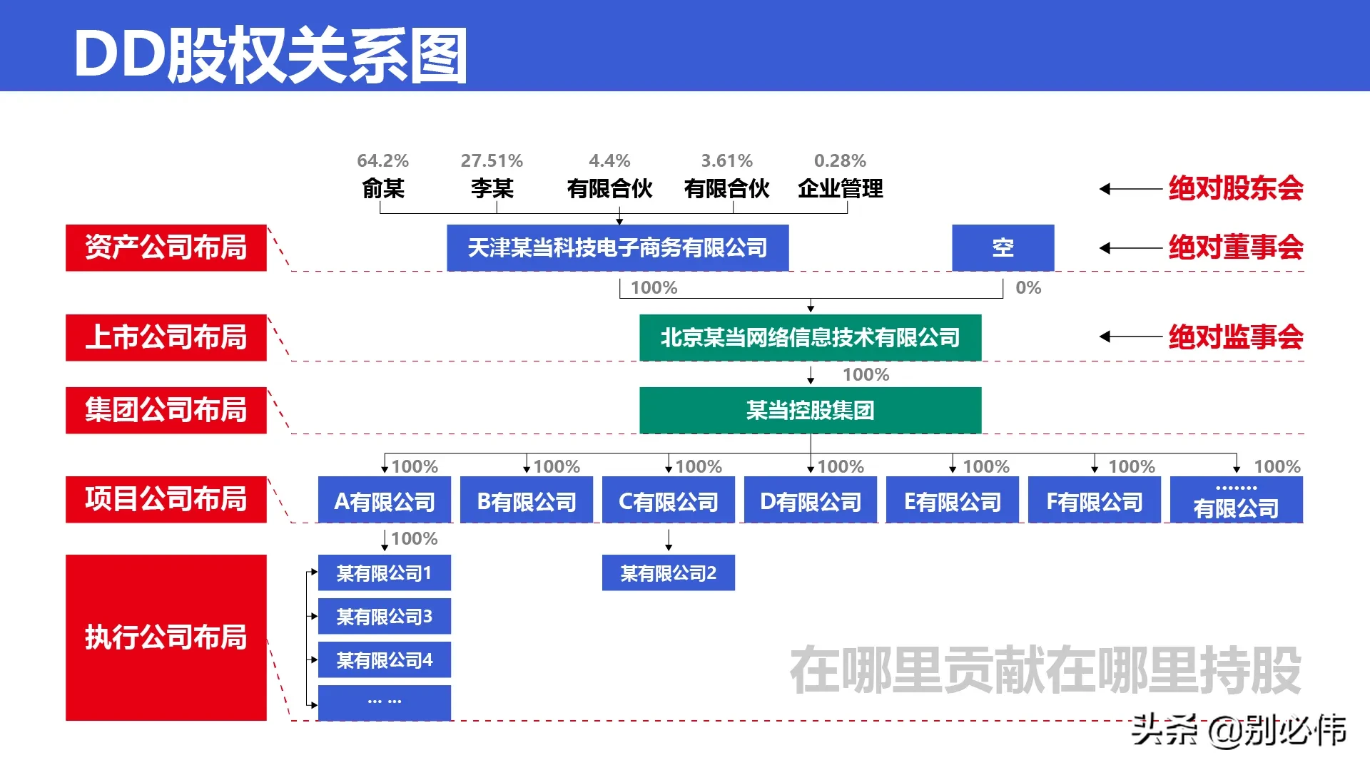 2.但掌控蚂蚁的却是另外一家神秘公司,这家公司叫云铂,注册资本仅1010万却控制了君瀚君澳,间接持有蚂蚁51%股权,所以云博才是蚂蚁最大股东,而云铂的背后就是马云,但诡异的是,云铂实际上持有的君瀚君澳股份都不足1%,而马云在云铂也不过持有34%的部分,那马云是如何做到掌控蚂蚁的?有限合伙股权架构,简单说就是其他股东仅享有分红权,但管理权则交给普通合伙人的云铂,由此马云建立起两道屏障,不仅用几百万撬动了万亿巨头,还完美的屏蔽了自身风险。
