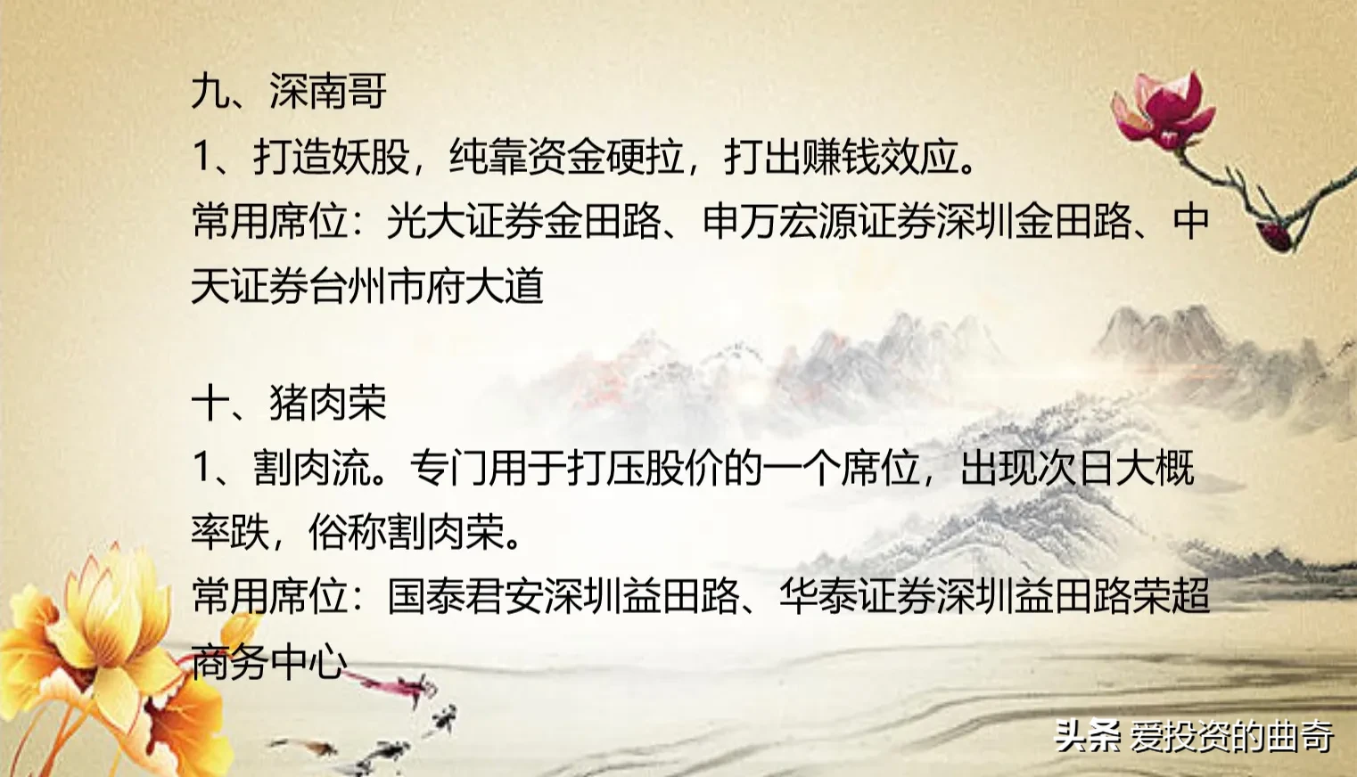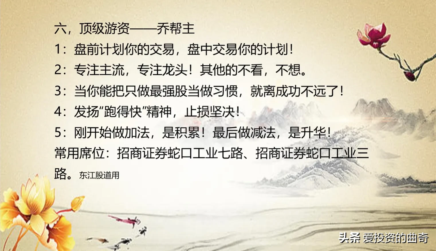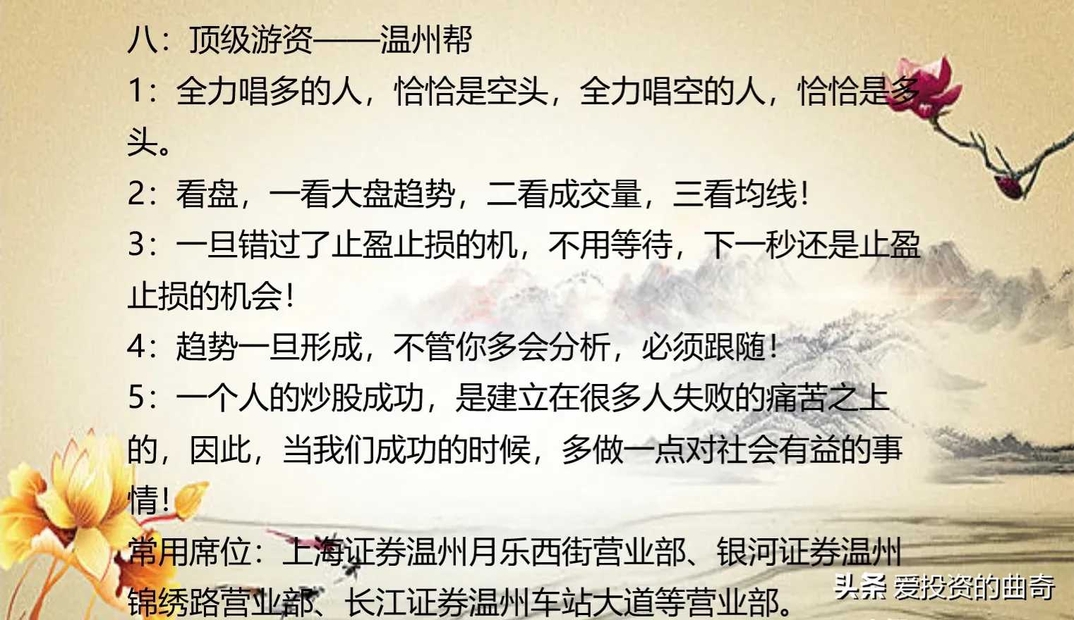 22.以便股友们收藏学习,花了4个小时将10大级柚子的操作笔录以及所在席位,制作成图片分享给家人们。
