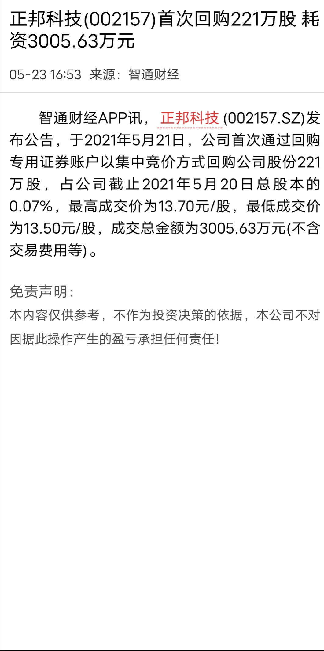 3.到5月28日收盘的价格为15.18元比它回购的最低成本价20.81元整整低了将近5元一直到现在也还看不到底部在哪里。