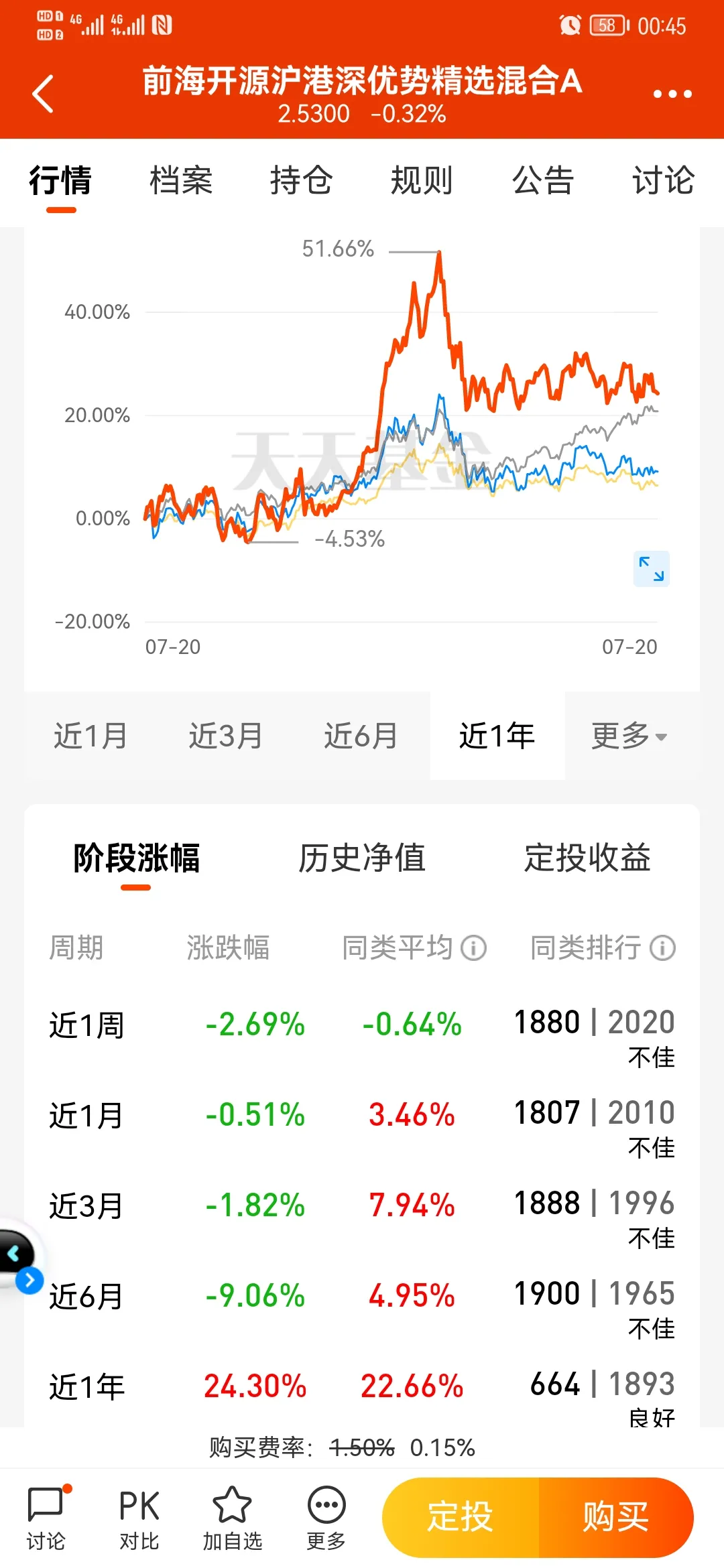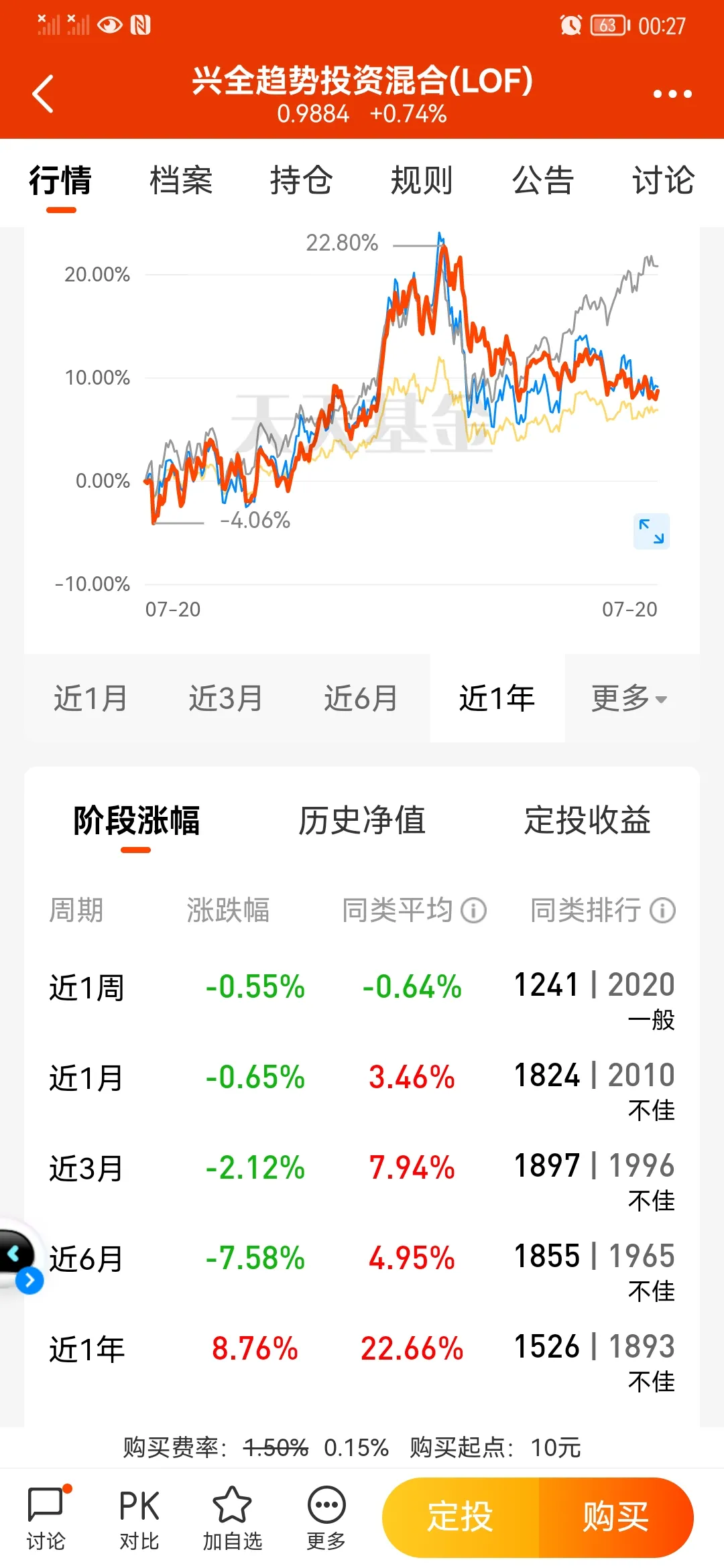 近3月/6月/1年的业绩:28% / 4% / 7%