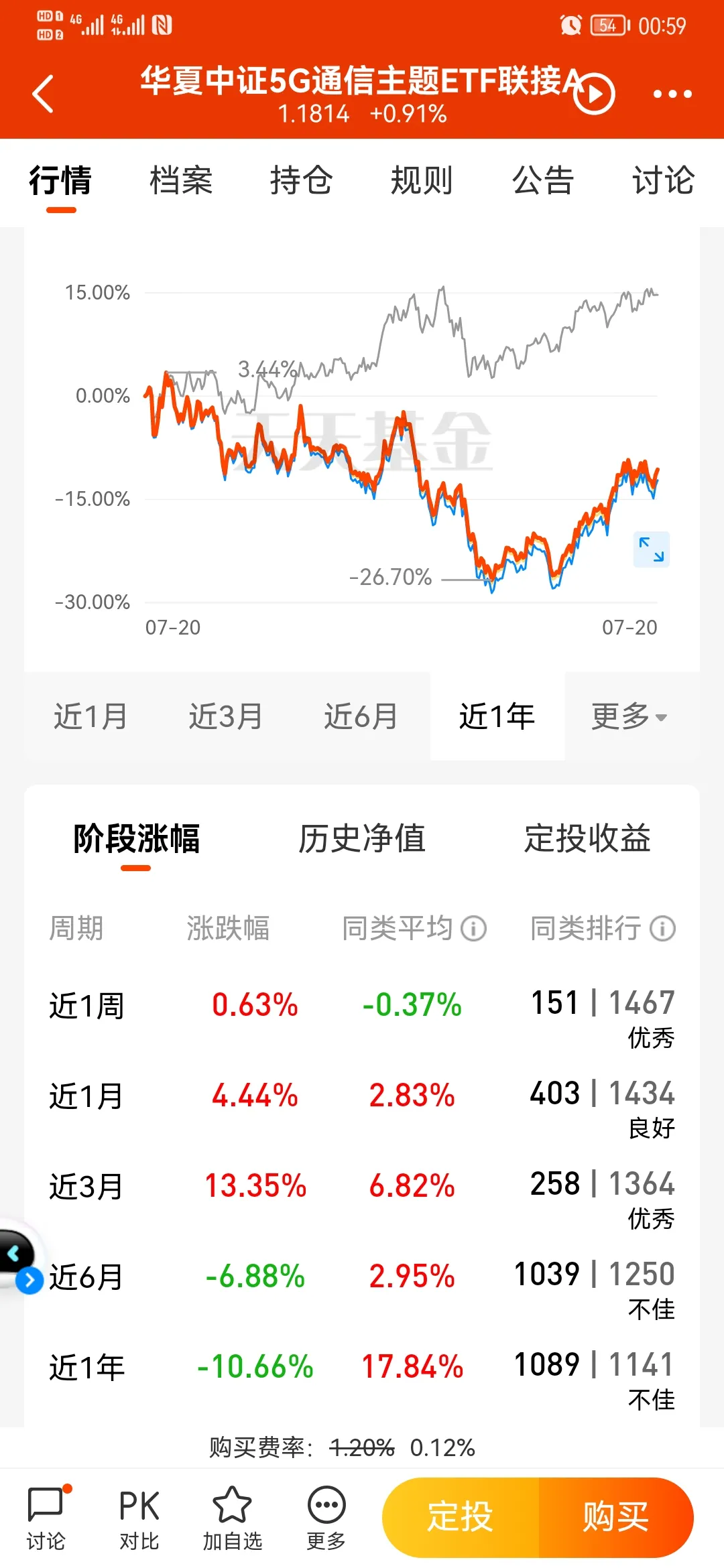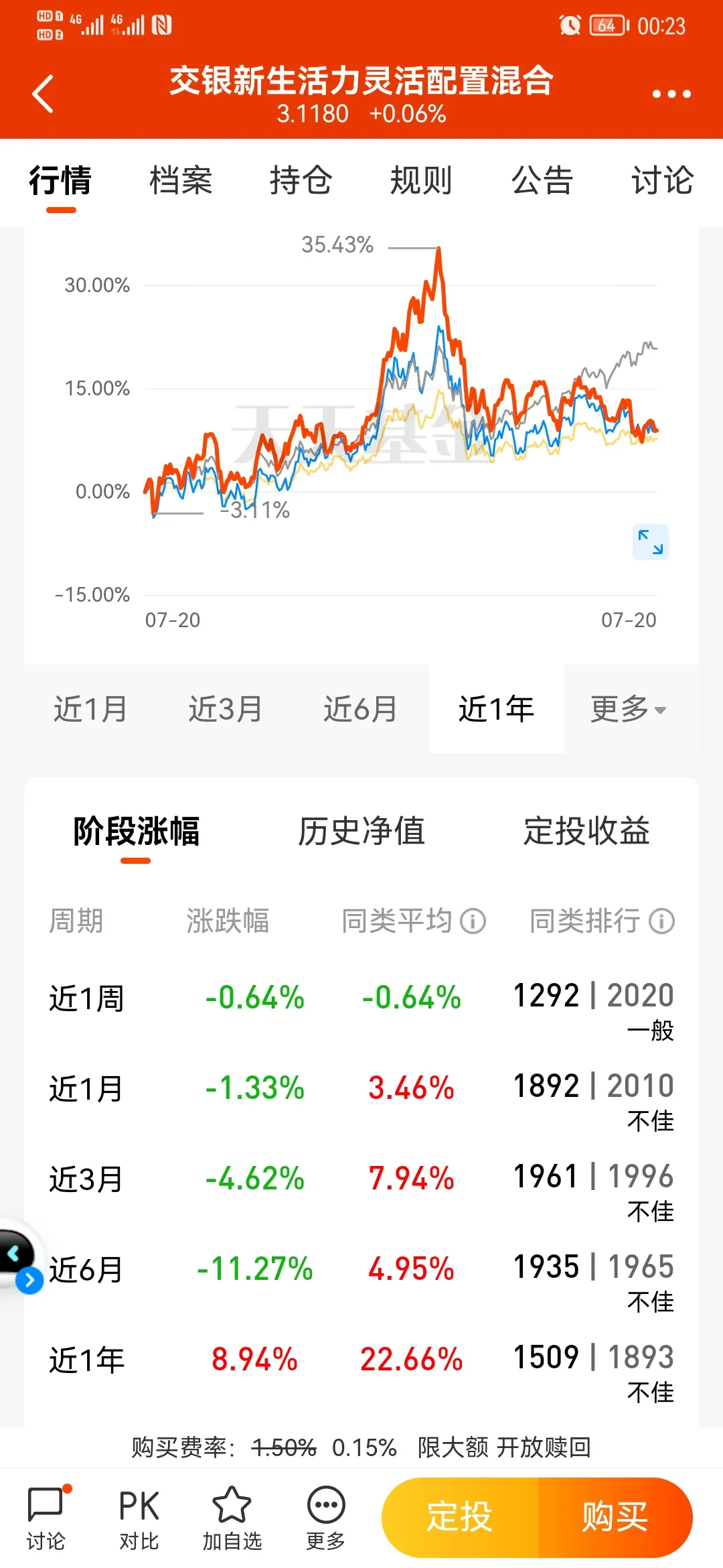 近3月/6月/1年的业绩:2.94% / –11.9% / –14.6%