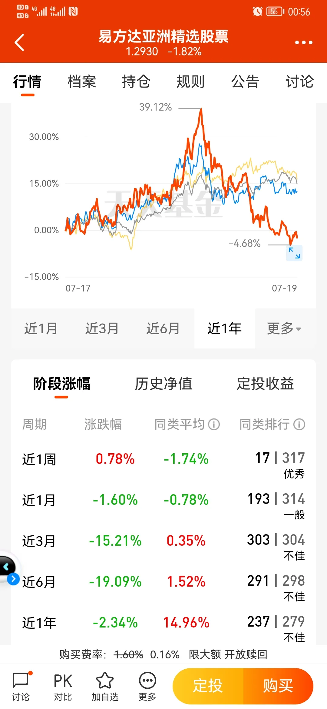 近3月/6月/1年的业绩:-1% / –4.9% / 4%