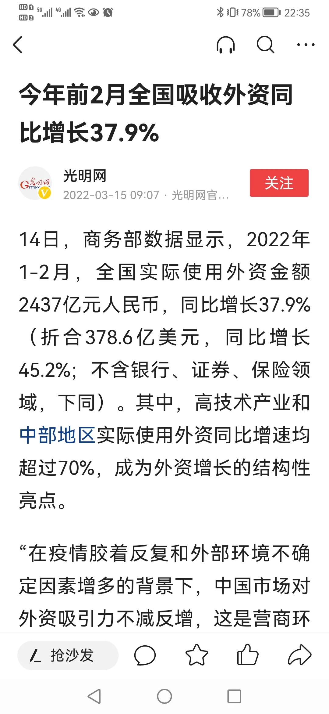 况且,根据商务部最新使用外资数据,今年2月份使用外资同比增加37.9%,这么高的增幅,这些外资投向了哪里?我当然知道这部分外资更多是投在了产业、投在了一级市场。那也强烈说明外资是看好中国经济的,中国市场对他们有足够的吸引力。那我就不明白了,股市上,他们反而要做空?一方面看好中国经济,一方面做空中国股市?这得多撕裂啊?[捂脸]我
