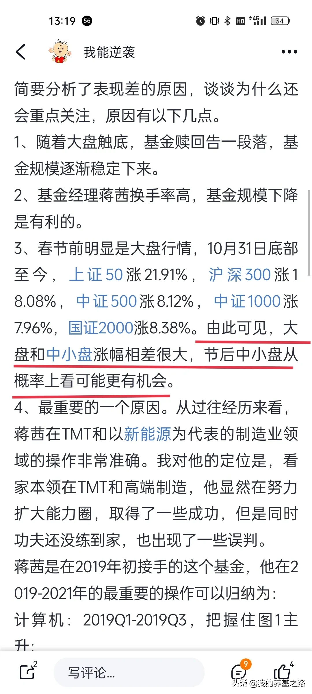1.尽管这两天沪深300表现不好,但大盘整体其实并不差,原因在于先前权重行情告一段落,这几天轮到了小盘股表现。