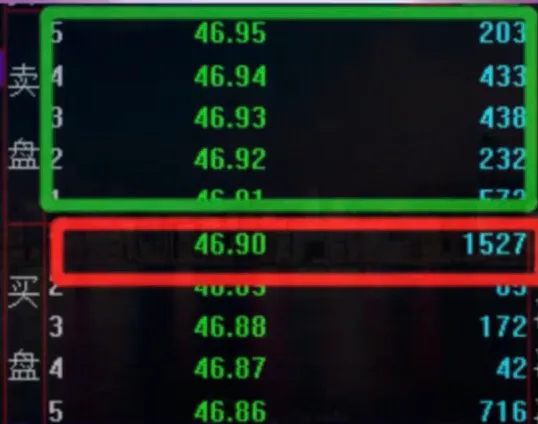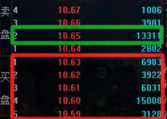 10.第五,外盘大于内盘,但是买卖盘口上面出现盖板形式的压单,下面还有大量的买单,这种情况主力大概率在建仓,同时不想把股价推得太高(图五)。