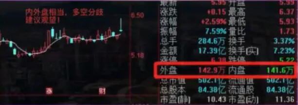 3.简而言之就是内盘代表看空,外盘代表看多。