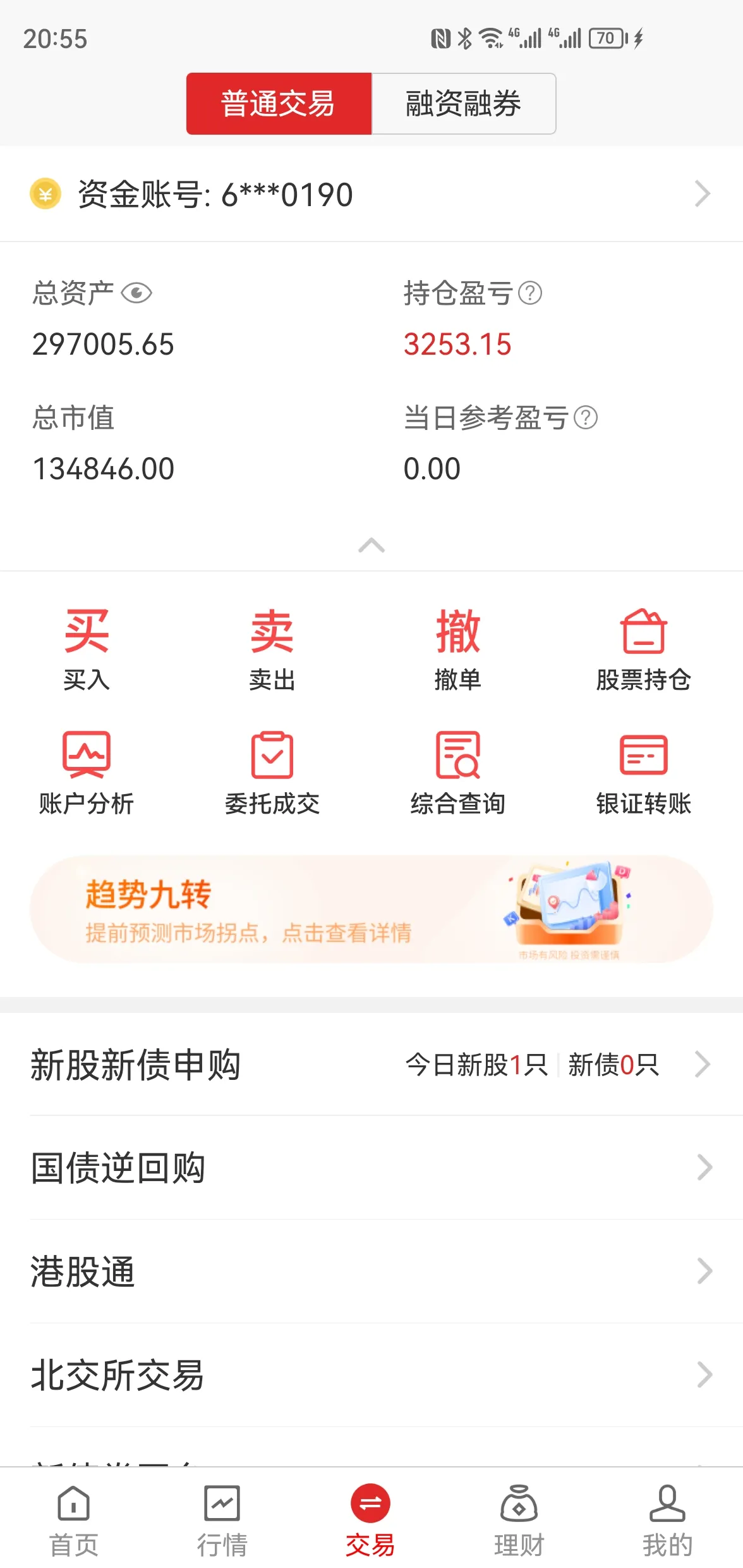8.说说今天的行情,我的股票账户中,重仓证券,今天本来打算高开卖点,上午临时开会错过了卖出的机会。