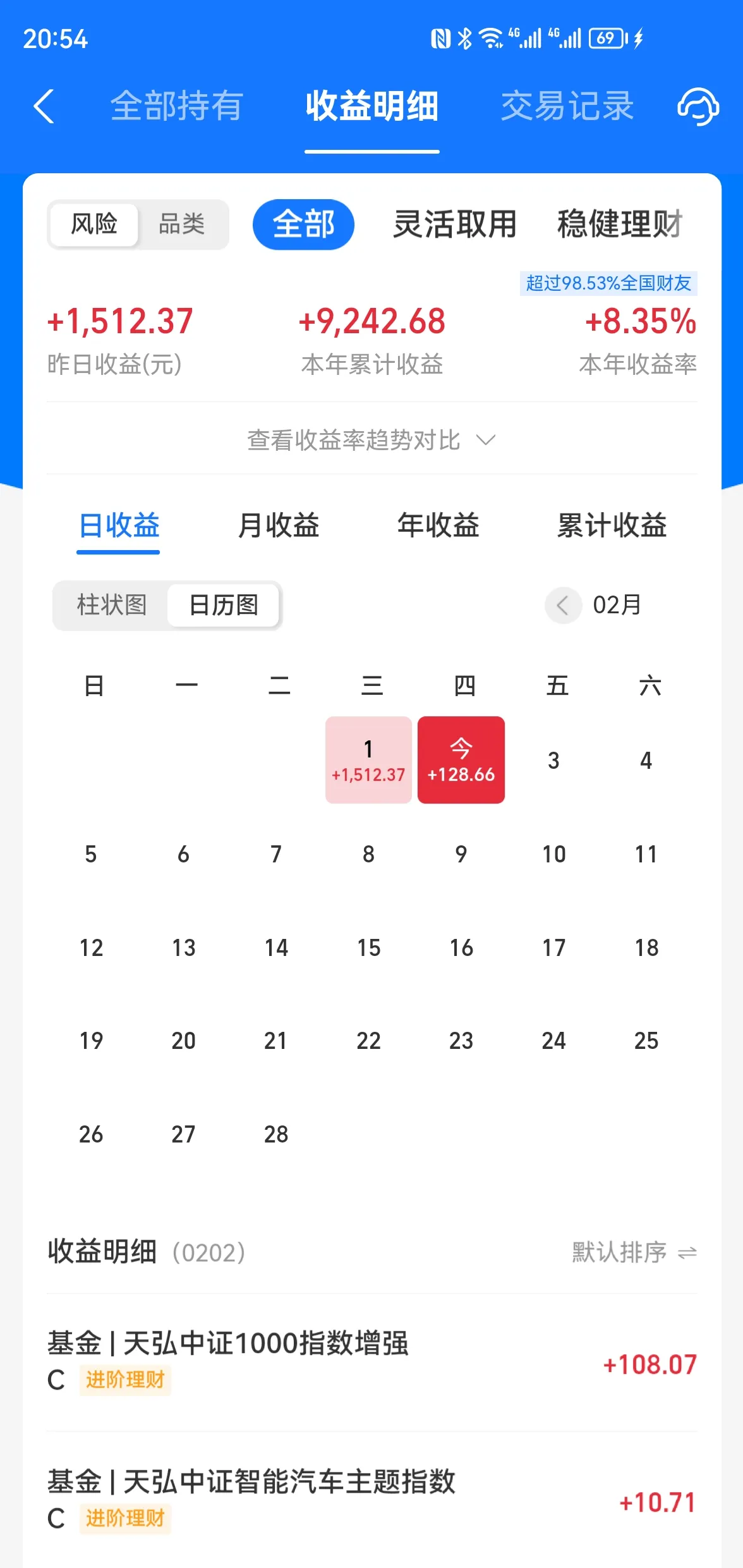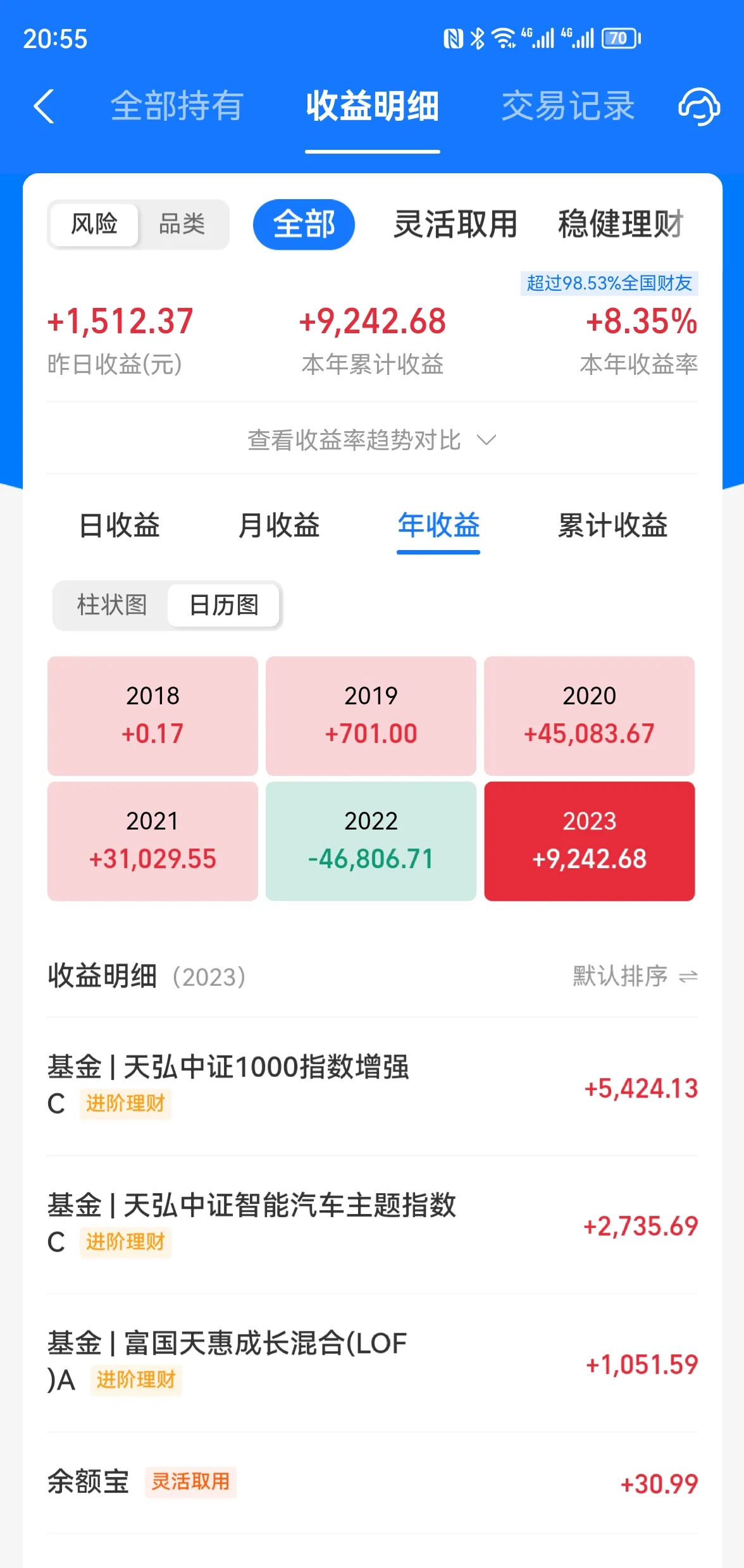 5.开年基金账户就有8个点收益,股票账户也基本将2022年亏的回血了。
