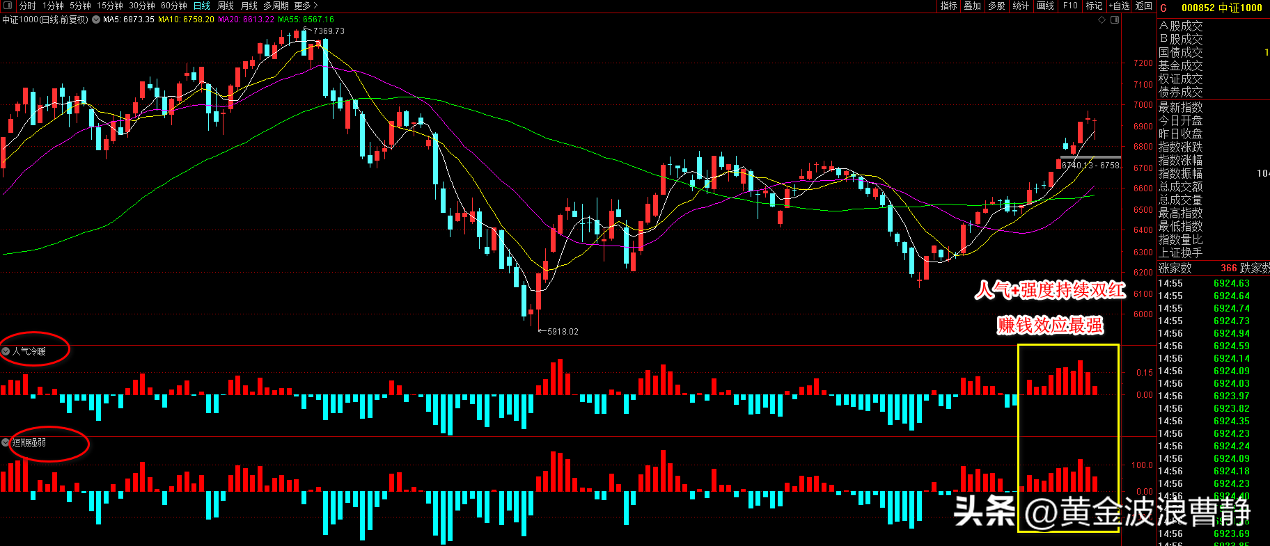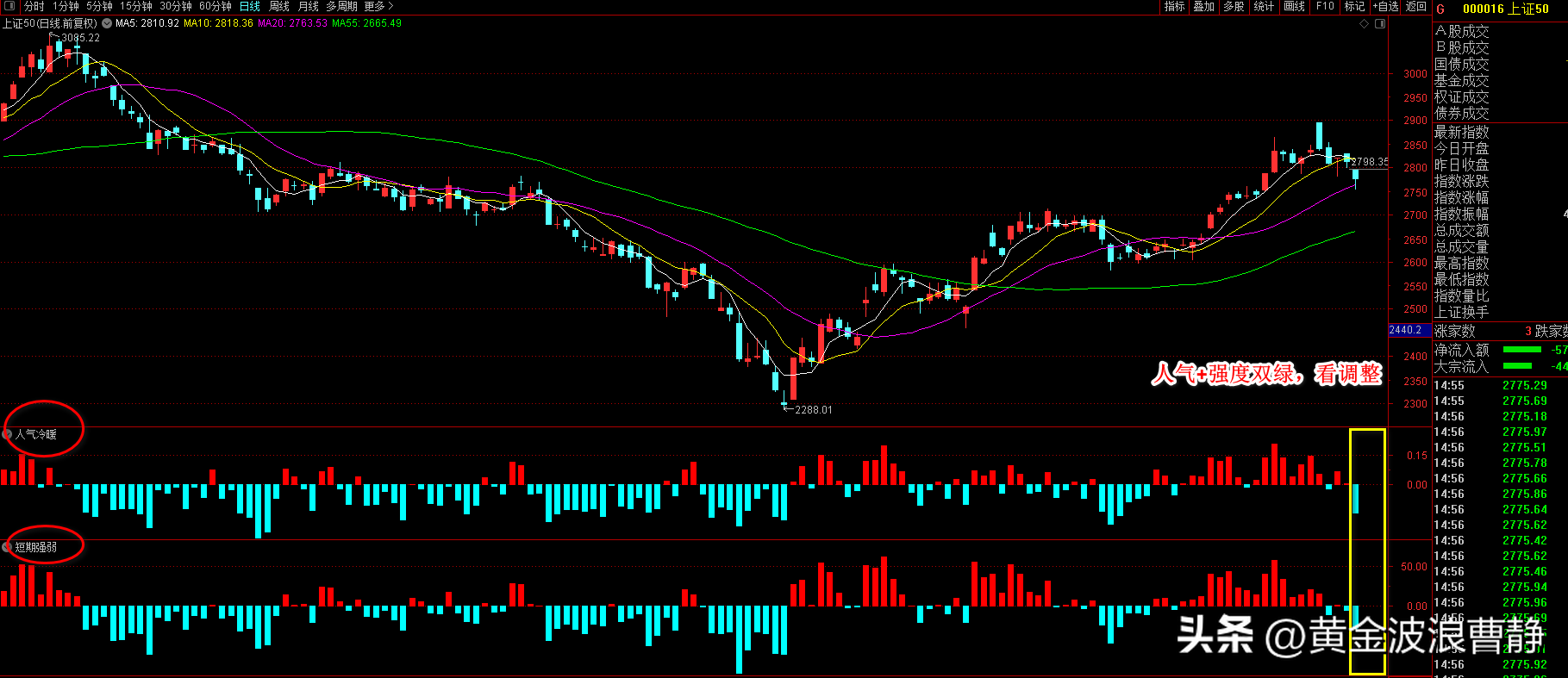 最弱的就是上证50和沪深300,这两个指数今日均同时出现了人气和强度同时走弱的信号,资金兑现抛压强,也可以理解,毕竟之前外资爆买买的最多的也是这两个指数。