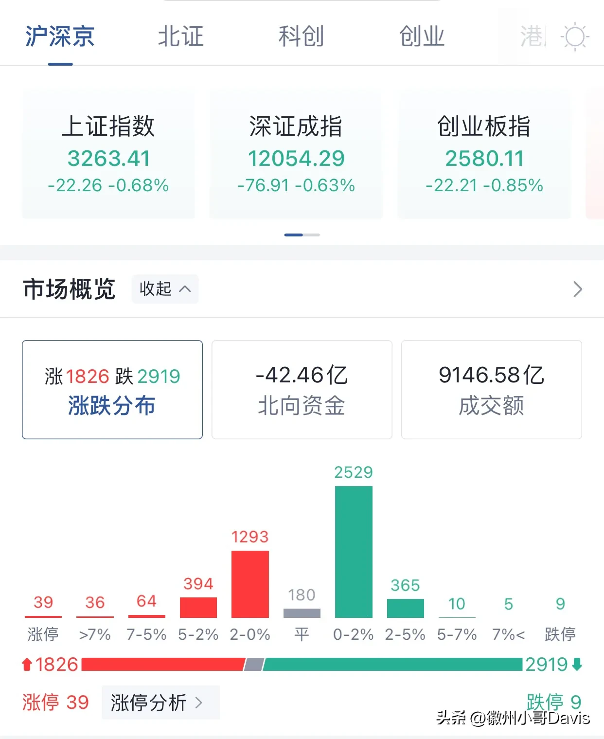 3.截至收盘,沪指跌0.68%,收3263.41点,深成指跌0.63%,收12054.3点;创业板指跌0.85%,收2580.11点。
