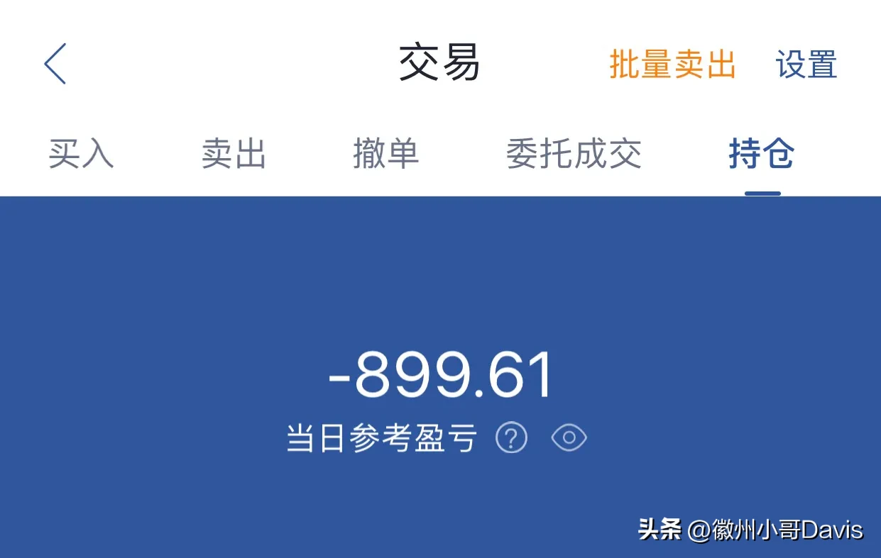 9.5、个人操作总结,今日A股三大指数低开,盘中市场逐步走弱,三大股指集体收跌,两市成交额在连续两日达到万亿规模后出现萎缩,个股跌多涨少,市场上赚钱效应差,越跌越买,我今天操作买入了8笔,当日浮亏899。