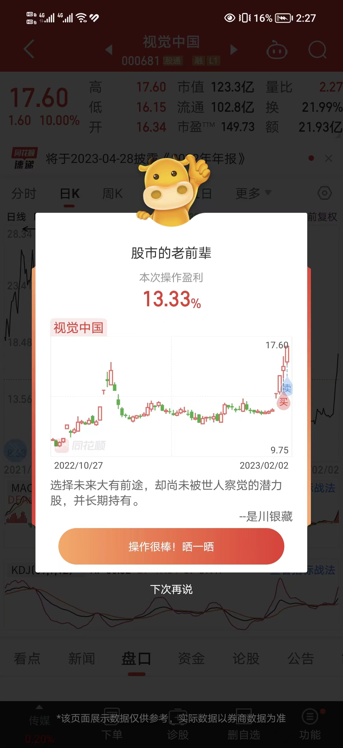 11.此外,还有我文章中多次强调的智能自控、汉王科技、福石控股、视觉中国等都是连板股,但还是错过了,如果有坚定的粉丝看了我的文章后,我估计本周收入不在50个点以下。