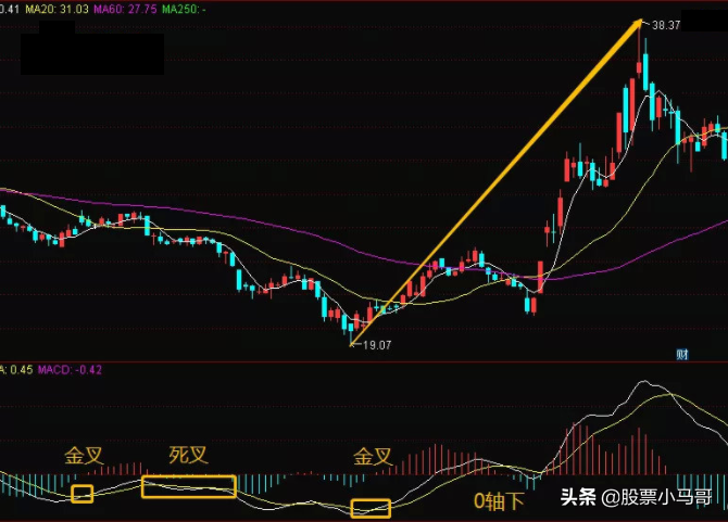1.一个只有炒股20年以上,才知道的不传方法!MACD不看“金叉”和“死叉”,关键在于这5个技巧!限时公开,速看!在所有的技术指标中,有一个广为人知的指标,叫做MACD,这是股票技术分析中一个重要的技术指标,由两条曲线和一组红绿柱线组成!当白线上穿黄线的时候,就叫做金叉!当黄线下穿白线的时候,就叫做死叉!这个概念,很多人都知道,用起来也很得心应手,但是胜率总是上不去,问题出在哪里呢?因为很多人只学了个皮毛,并没有把这个指标用精!比如:1:金叉之后再金叉2:死叉之后再金叉3:然后0轴上方的金叉4:0轴下方的金叉5:量能指标+MACD的双金叉……今天就给大家介绍5种经典的金叉形态组合!1:金叉后上涨,然后指标回调,再次金叉MACD指标金叉后,跟随股价一起上行,一段涨幅过后,股价开始出现中继调整,主力洗盘的时候,MACD黄白线回调到0轴附近,然后股价再次开始上涨,指标这个时候再次形成了金叉,形态完成。