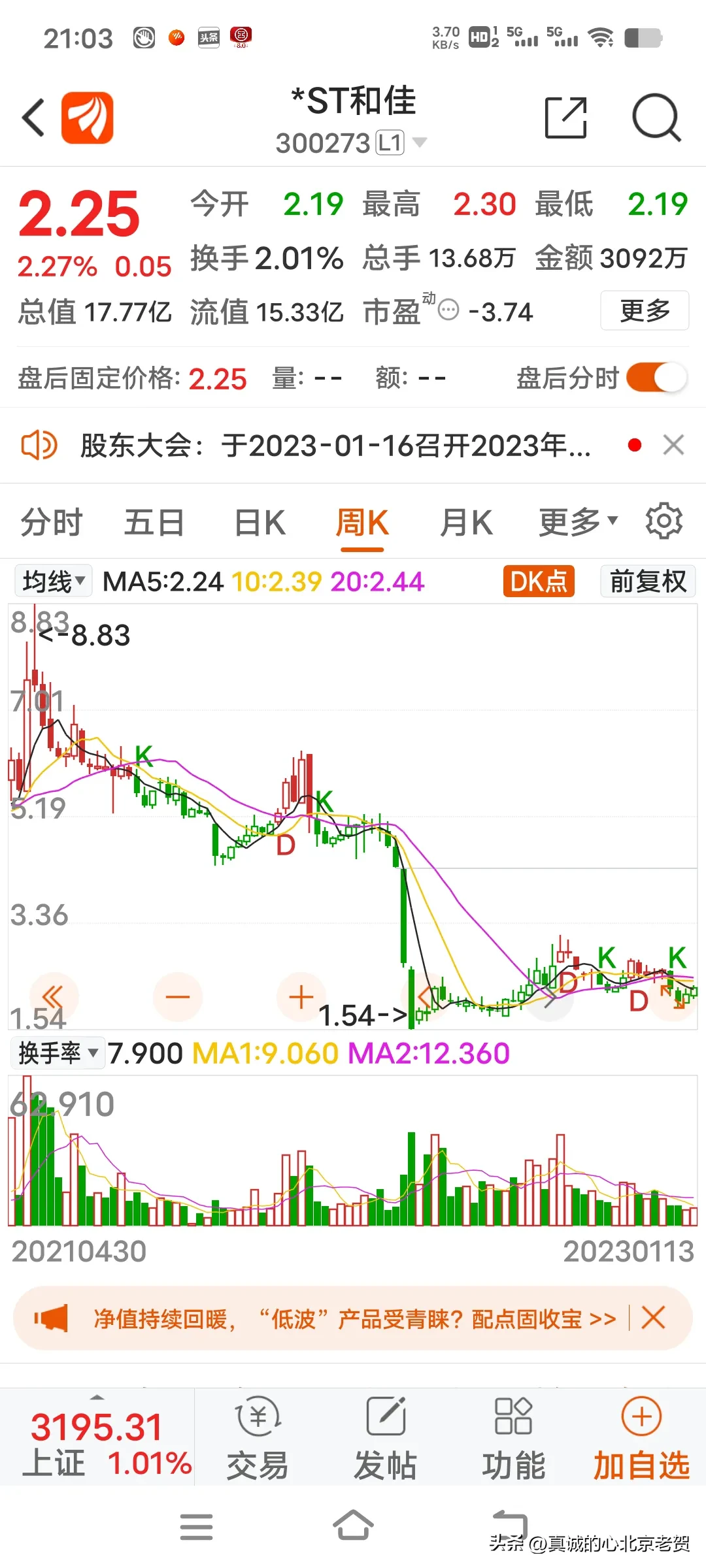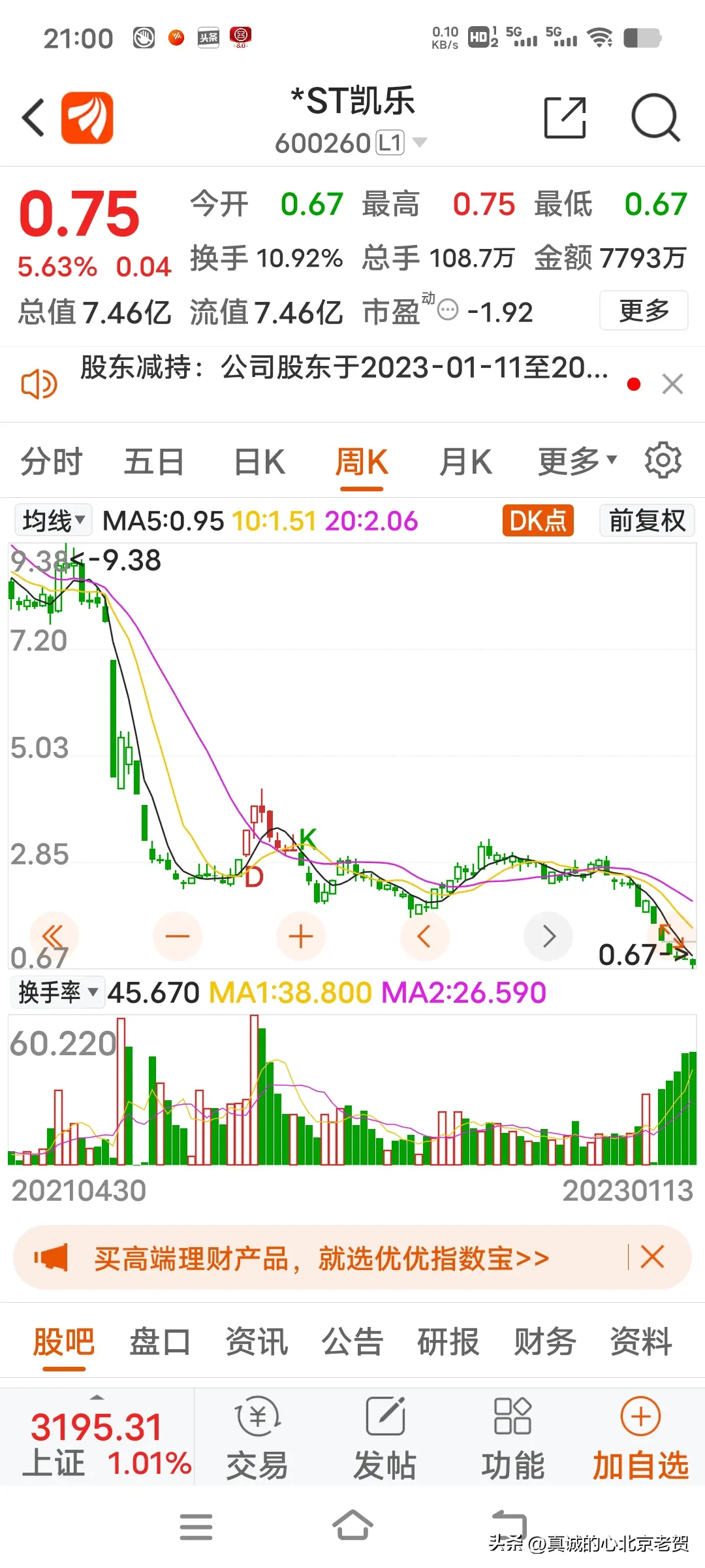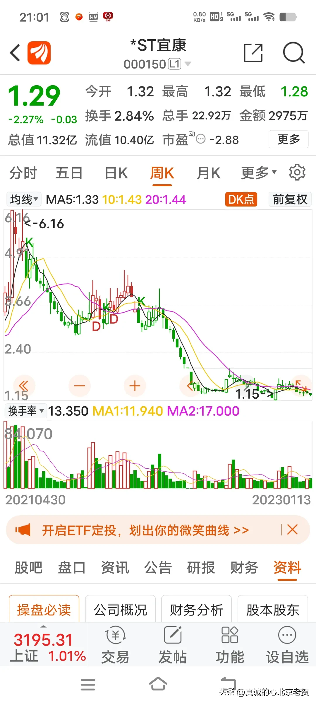 4.图中前两只股票,如果你在去年1月份买入,到年底你就赔了90%多,这两只股票还有被退市的风险,你说股市里有这么多只股票你不买,你偏得买两只垃圾股票,亏损严重的股票,用几十块钱买进垃圾股票,赔钱你不赖自己你赖谁?真的,有的人一生挣辛苦钱不容易,不舍得吃 不舍得穿,攒两个钱进入股市,但是被这个股市上了一生都忘不了的教育课,赔的一无所有,这样的人真的不赖别人赖自己,好日子不过,偏得自己把自己辛苦的挣的钱给别人,自己往火坑里去跳。