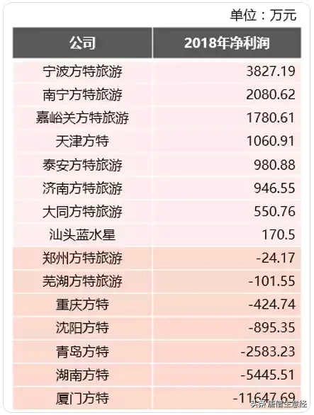 以我十多年旅游行业经验,不用看财务报表,我就知道方特游乐园肯定亏钱。不过我还是以2018年全国15个方特游乐园的利润数据来佐证一下(其它年份也大差不离),2018年15个游乐园总亏损-9681万元,这还未计入自有资金成本,如果扣除资金成本,应该没有一个方特游乐园是盈利的(因为任何一个方特游乐园的每年资金成本都高于4000万,而15个游乐园中利润最多的也不过3800万),总亏损额将非常大。