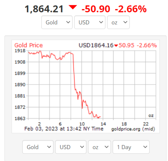 (#思进每日美股点评#:首先要说的是,美国1月非农人数大幅超出预期,失业率意外大幅走低(就在一些公司大幅裁员(美国媒体最爱报道“坏消息”,因为容易传播带来流量)的同时,一些公司却发现很难填补空缺职位),黄金随即大幅跳水,而美元指数拉升100多点……这提醒人们,之前鲍威尔言有所指,显然他们还没有看到收紧政策对劳动力市场的影响,但市场显然并没有听进去。
