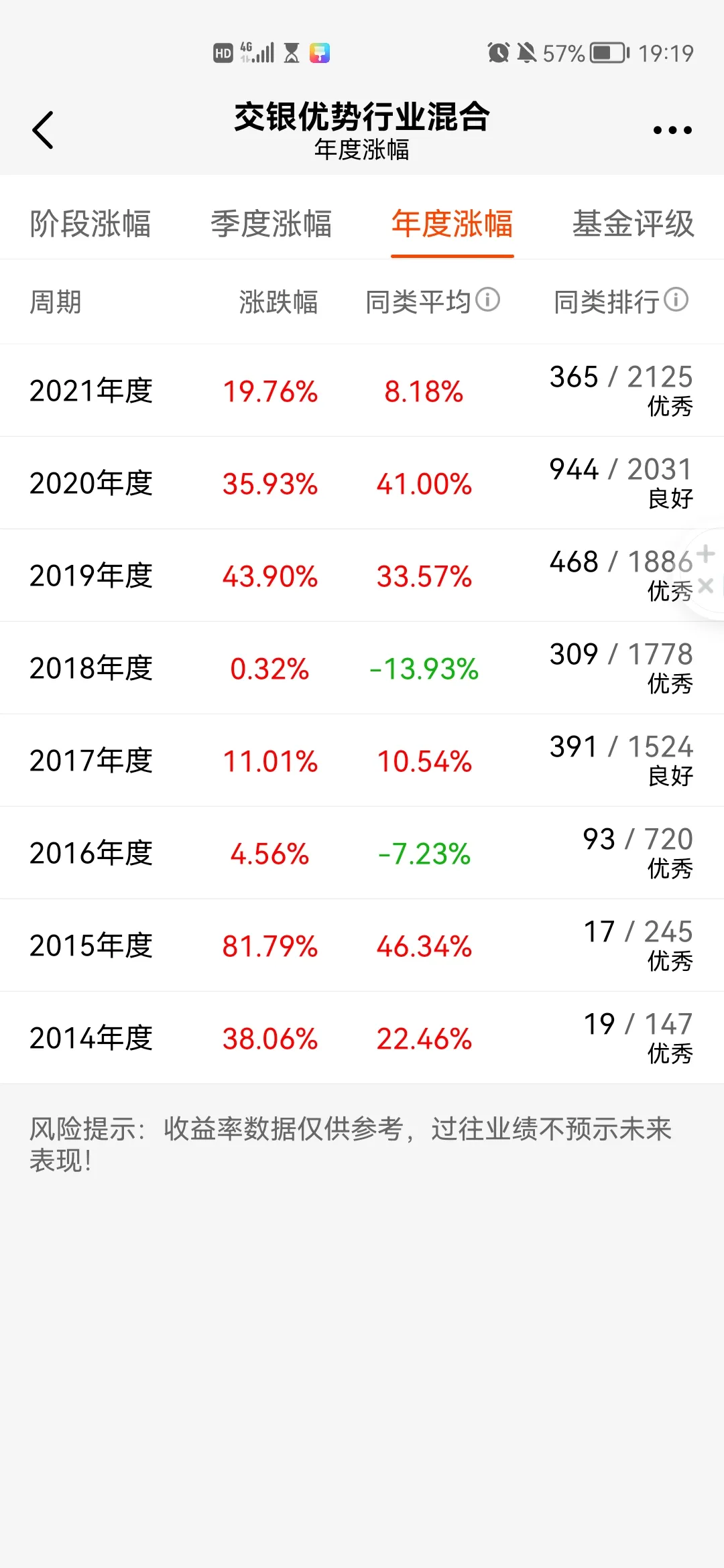 16.总结:交银优势行业混合适合稳健型低风险投资者,承受最大跌幅要在15%左右,现在跌了10%,随时准备入手,最近八年收益率都为正的唯一偏股基金。