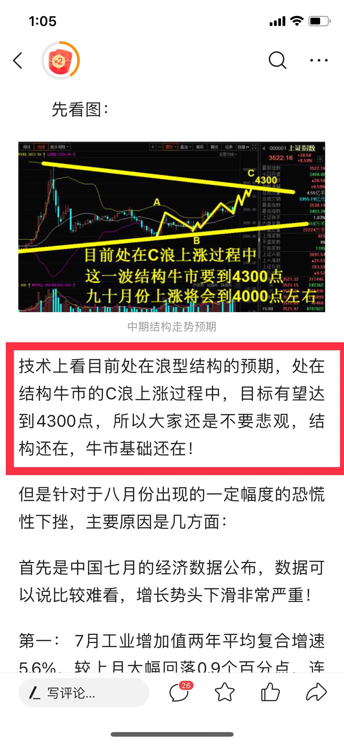 对于当下指数走势,中期3850点的目标没有改变,短期会出现宽幅震荡行情,由于美国的债务危机情况紧急,焦煤焦炭价格的大跌,苹果遭受重击影响,下周一低开低走概率较大,不过回调到3685一线就会企稳上涨,目标3800!