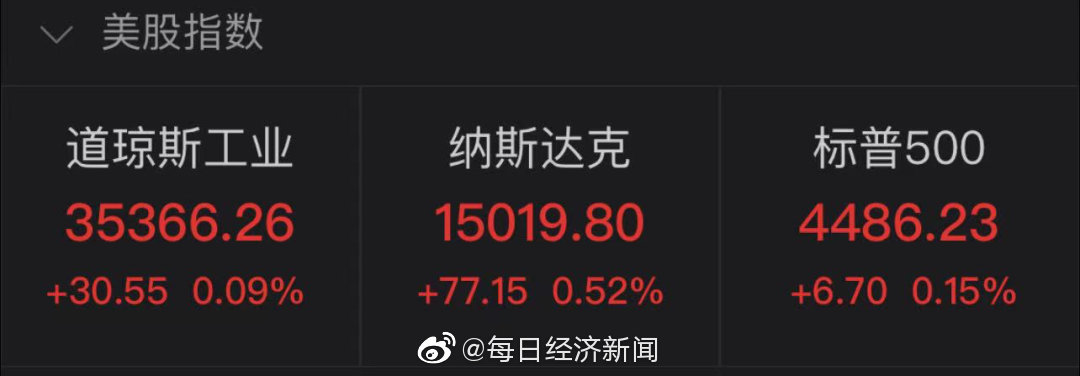 2.截至收盘,纳斯达克综合指数涨0.52%,报15019.80点;标普500指数涨0.15%,报4486.23点;道琼斯指数涨0.09%,报35366.26点。