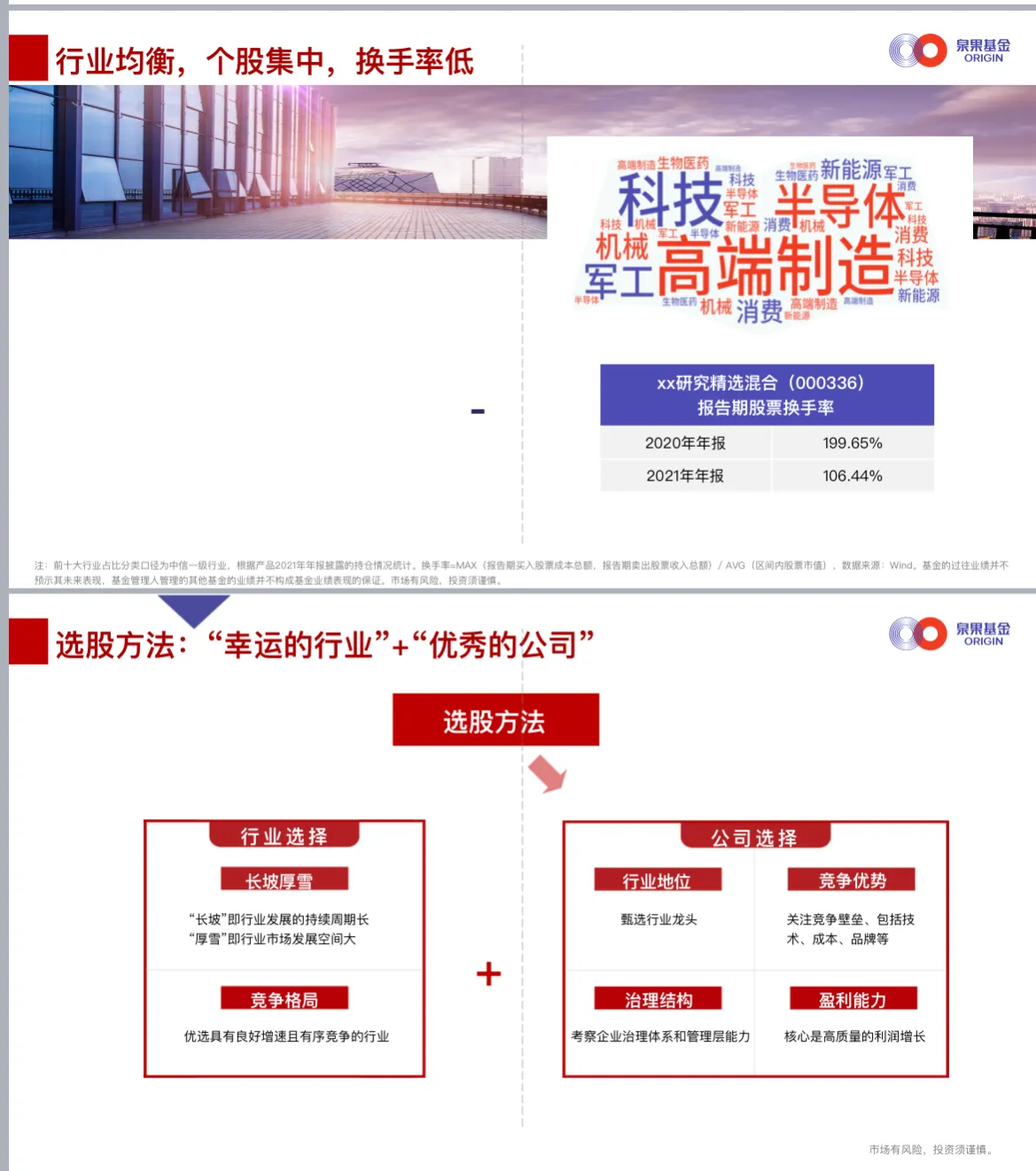最后,就是这只产品的一些信息,从目前的推介材料可以看到,该产品属于混合基金,股票资产比例为60%-95之间,并且可以投资于港股的比例可以达到股票资产的50%,设置了3年的持有期,投资策略是基本面研究+“自下而上”的策略,