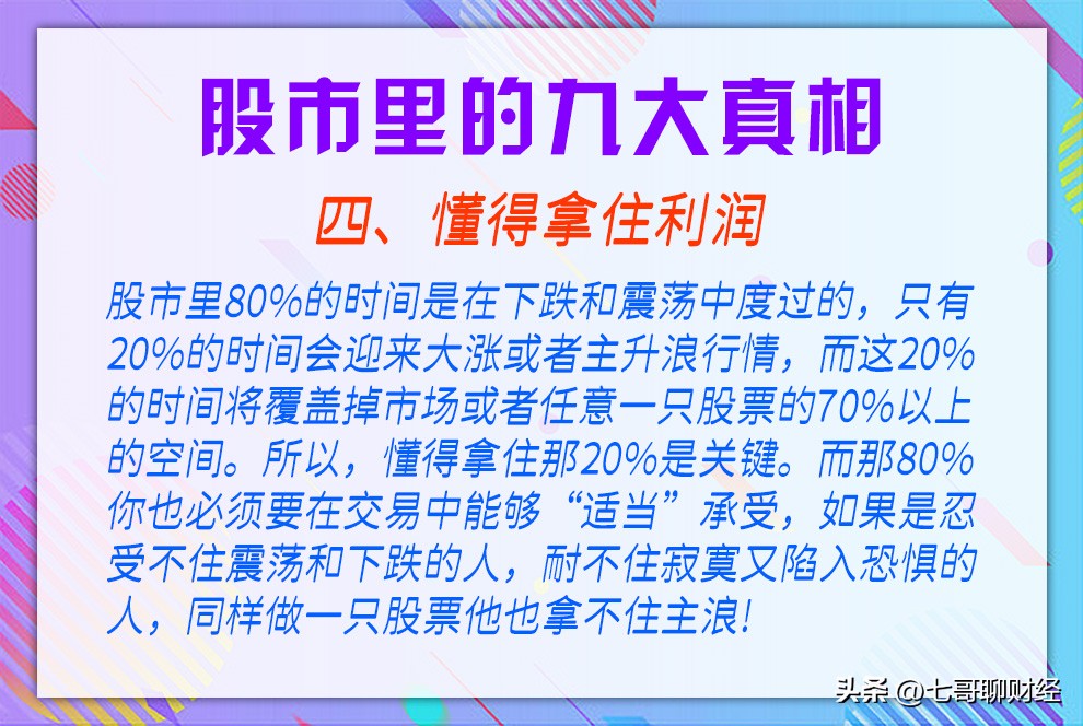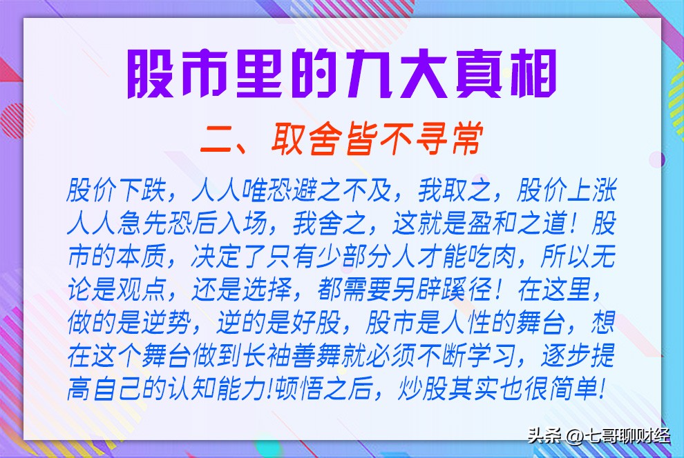 9.最后,我将股市里的九个真相整理在图片中了,欢迎在评论区留下你的想法,觉得有给你带来新的思路,请点赞关注七哥,感恩在此遇到各位道友,祝大家股市长红!