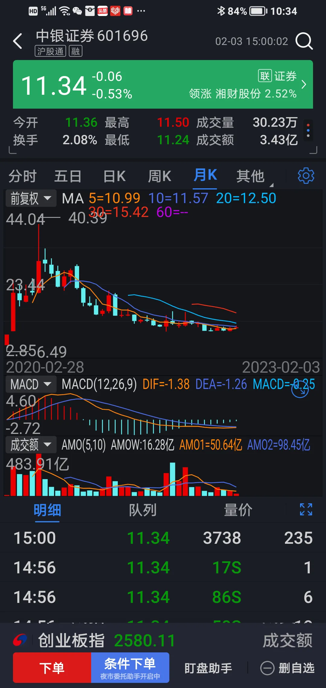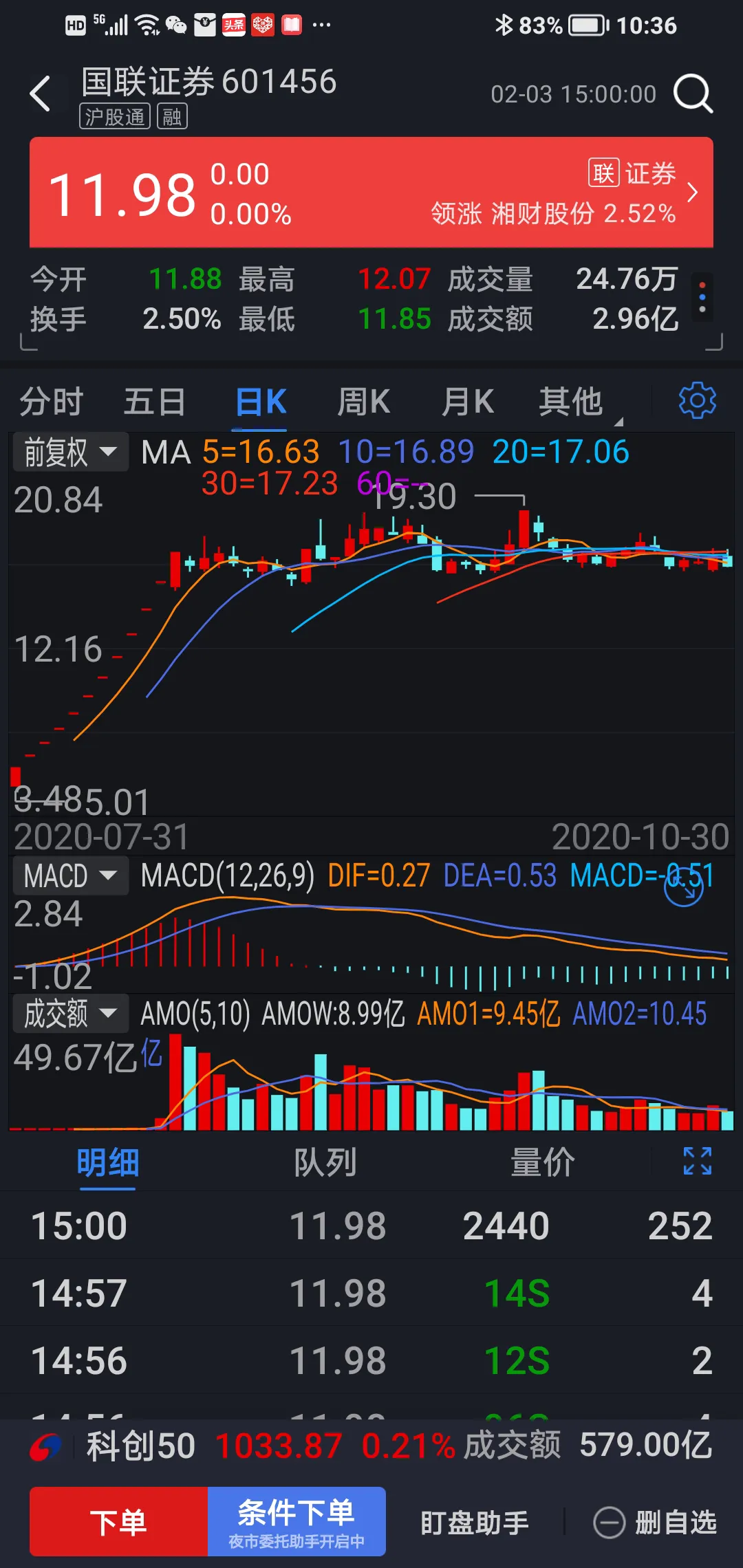 三国联证券2020年7月上市发行价4.23元。上市后12个一字涨停板见19.03高。虽然说也下调见过13.87低点(同中银差不多)但2021券商股大涨时,这个国联由于有突发利好(上市不过一年增发〉又创下23.05历史性郭高。不过随后增发意外被证监会否了没有成(内幕至今无人知晓)股价也是腰斩。最新价11.98元。等于跌了46%。也等于高价一百万拿到今天缩水成54万,
